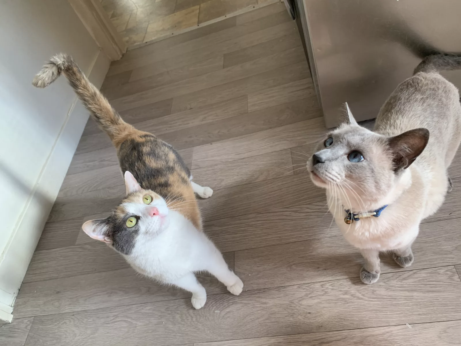 The female is very shy but once she gets to know you she will constantly hang around you. The male Siamese is super friendly but likes to play fight so I probably wouldn’t house him with small kids. He likes to attack and play fight.