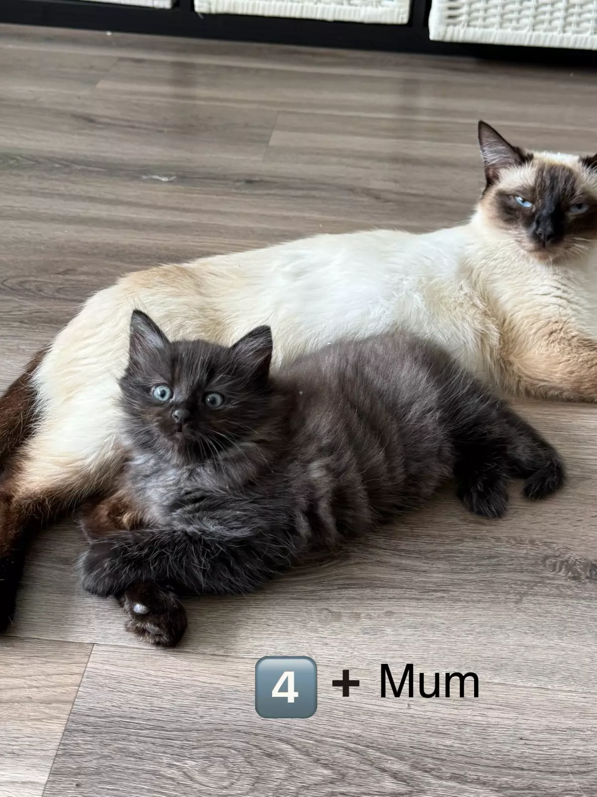 Mum is a traditional Siamese. The kittens have inherited the classic Siamese affectionate, vocal and intelligent nature.