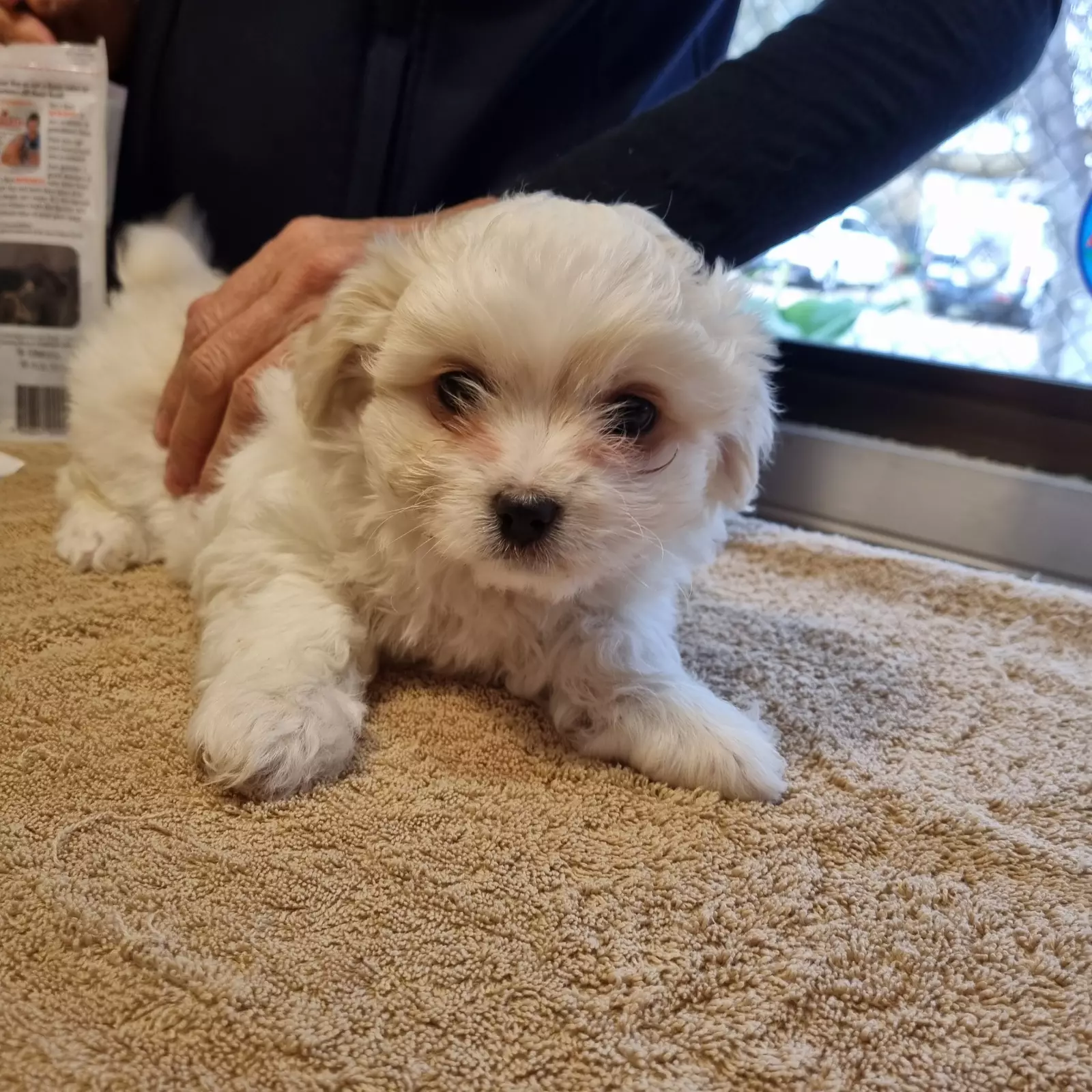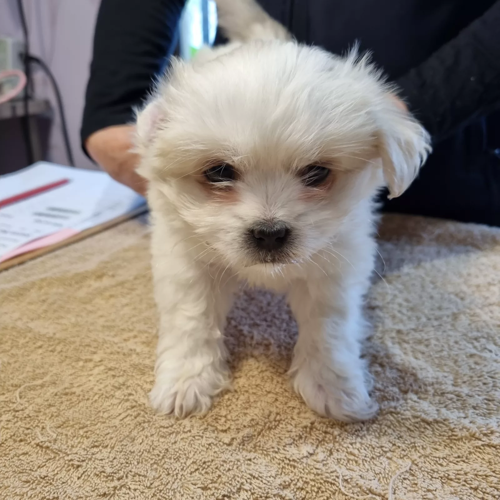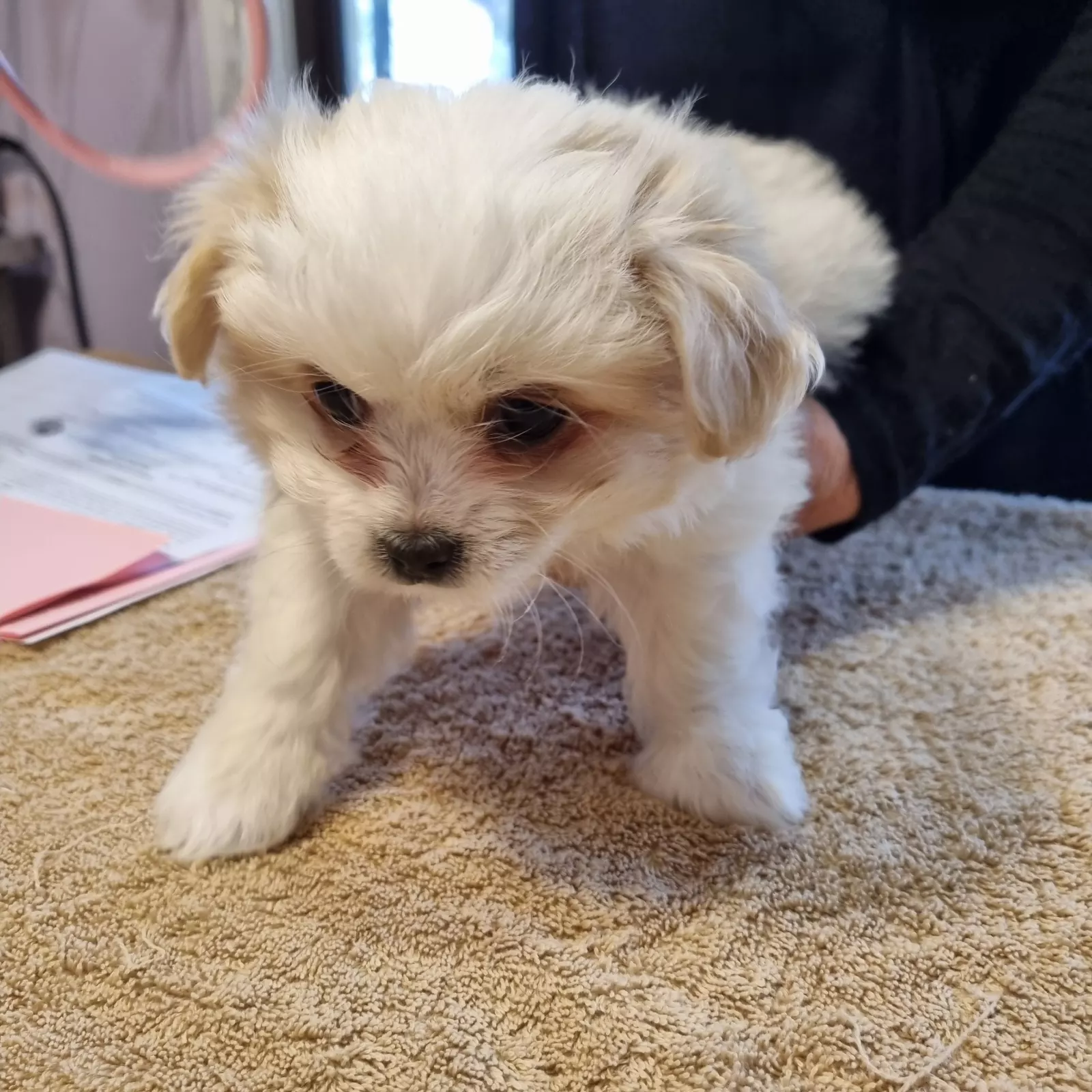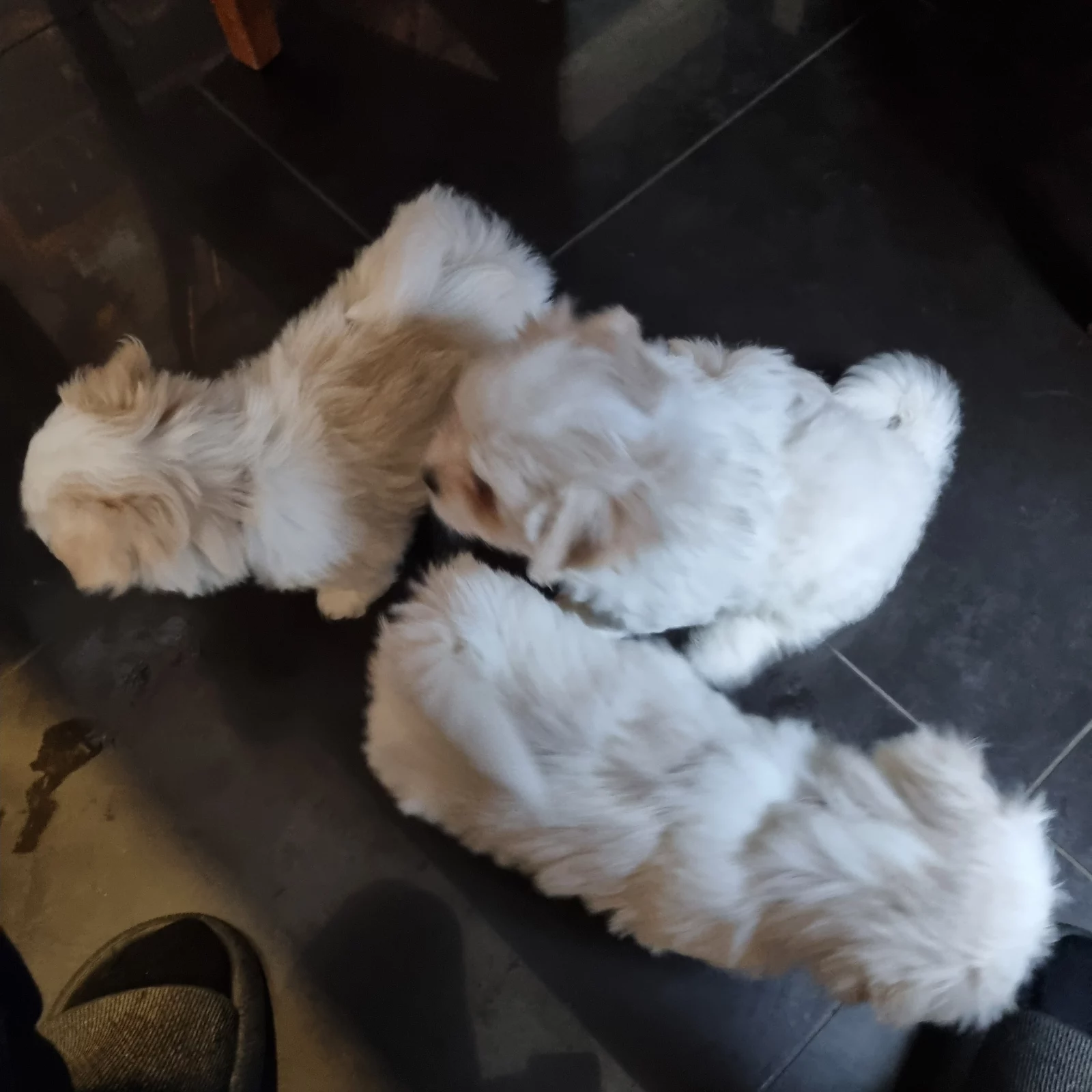 Mother is a Pure Bred Miniature Maltese and Father is a Pure Bred Tibetan Spaniel as seen in last 2 pictures...