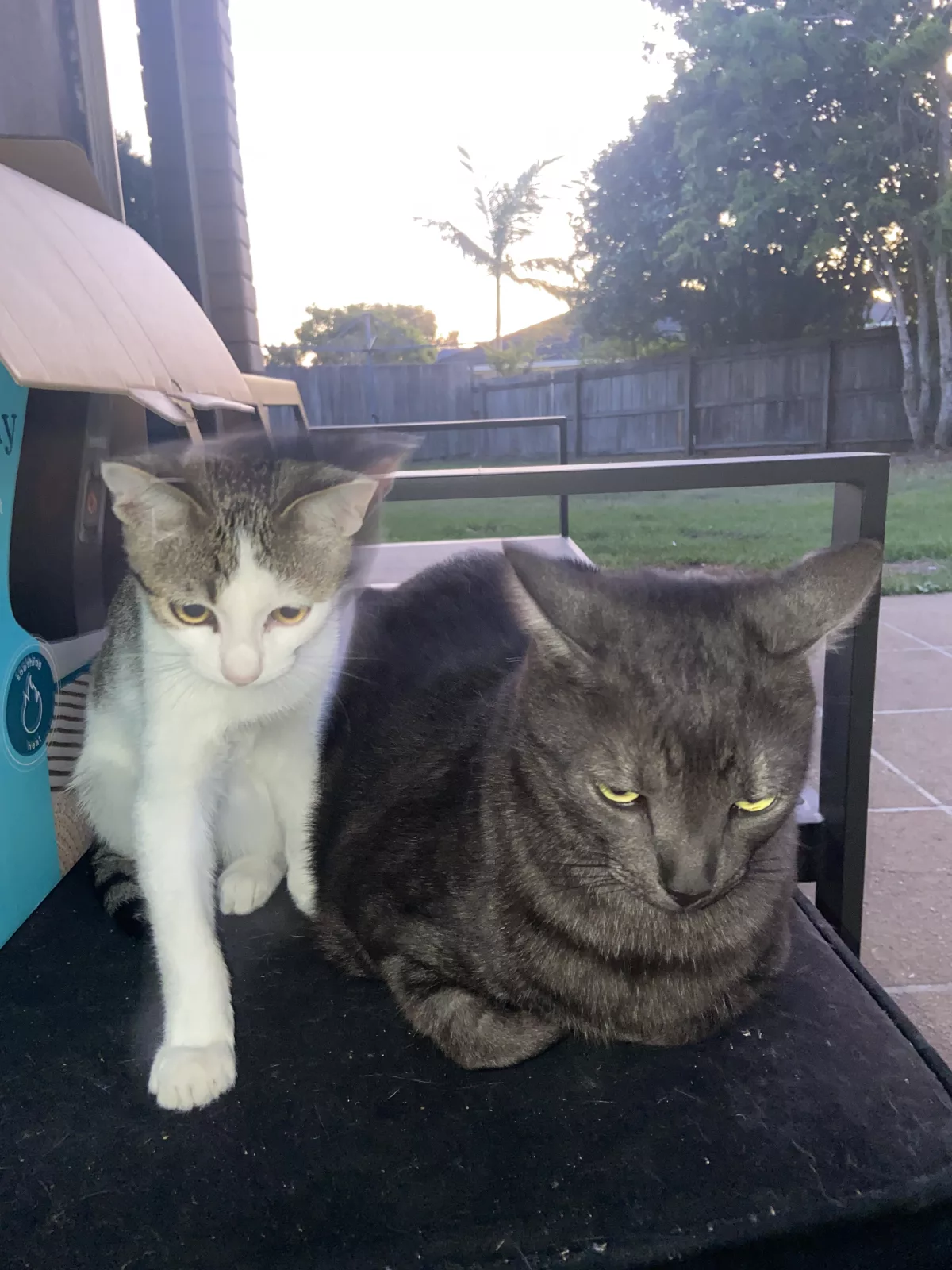 These cats have a week to go or they’ll end up put down, u really need them to go, rocky( the chalky black cat) is 5 years old just your average cat, is potty trained to go outside, diddles ( the white and brown cat) is 1 years old, loves too cuddle and play around and also potty trained to go outside.