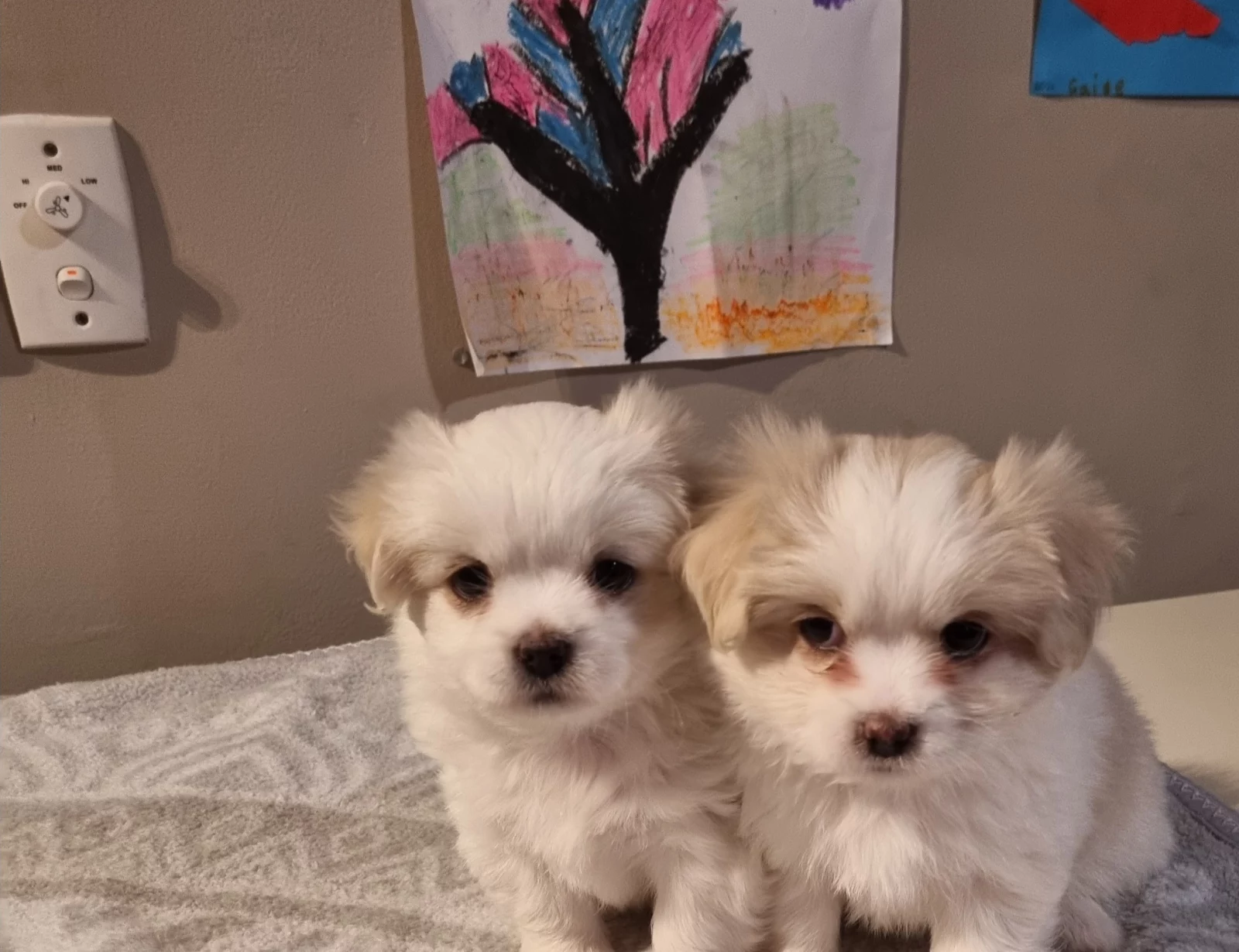 Mother is a Pure Bred Miniature Maltese and Father is a Pure Bred Tibetan Spaniel. Both very well natured dogs.