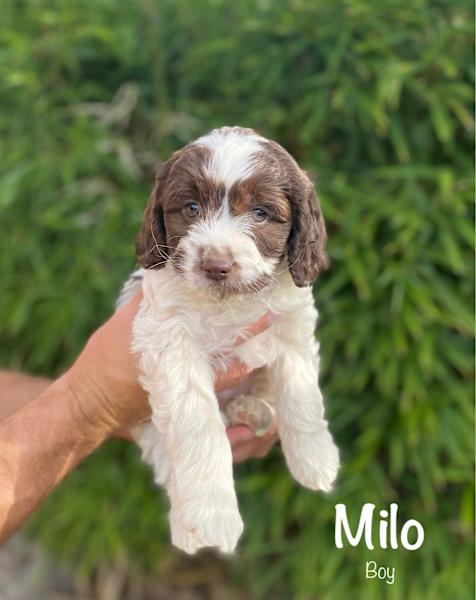 We have 3 Spoodle puppies looking for their forever homes! Milo is the only boy of the litter and has a stunning chocolate and white coat whilst our 2 girls Charlie and Peppa are beautiful in black and white.