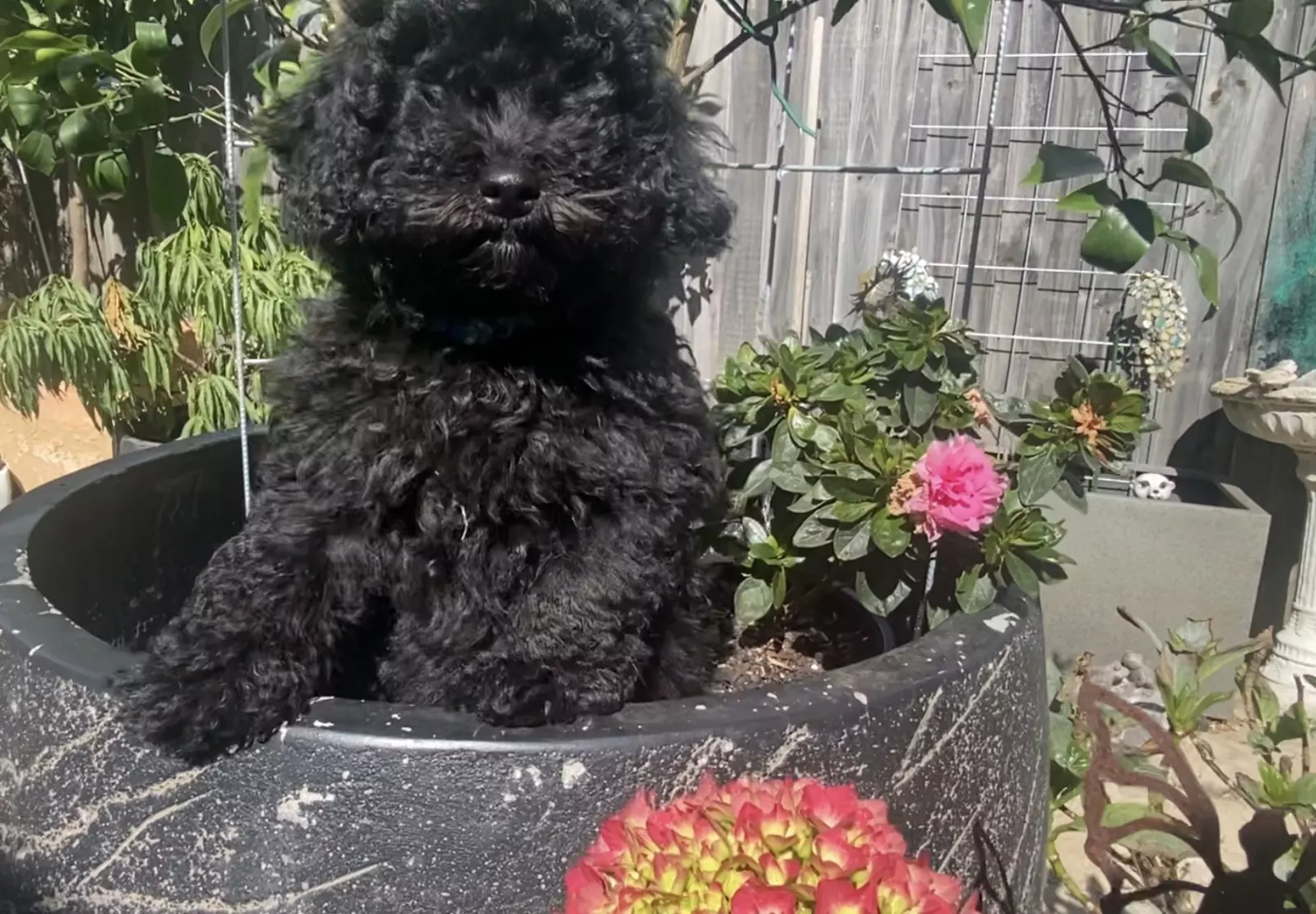 Spoodles long black curly fur are ready for their forever homes. A Spoodle doesn’t drop fur everywhere, they don’t drool. They love water to play in.