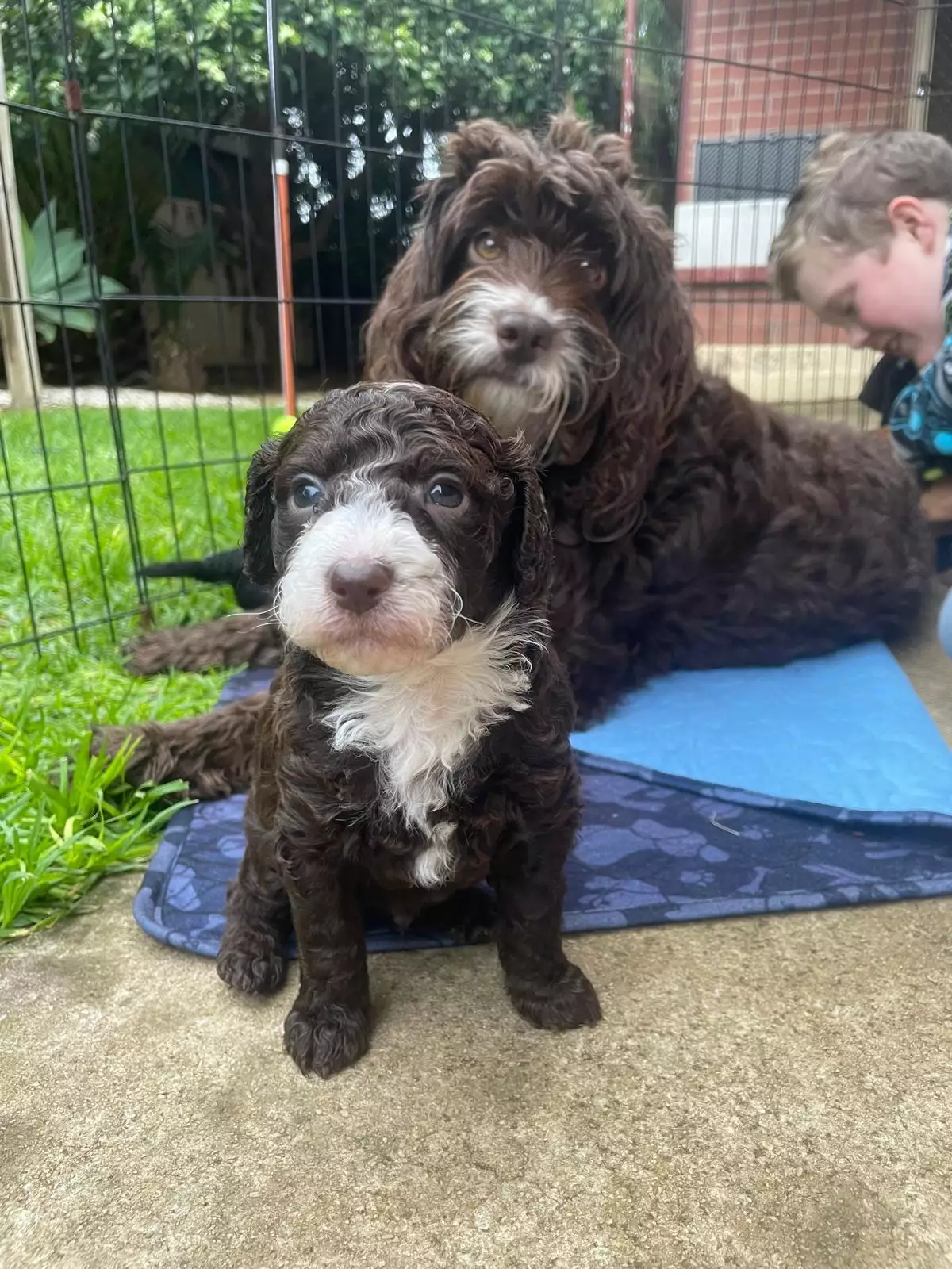 Both mum and dad have been DNA tested through Orivet and are cleared of hereditary diseases. Mum is an F1 Sproodle and dad is a purebred apricot Toy Poodle, producing puppies that are intelligent, affectionate and full of personality.