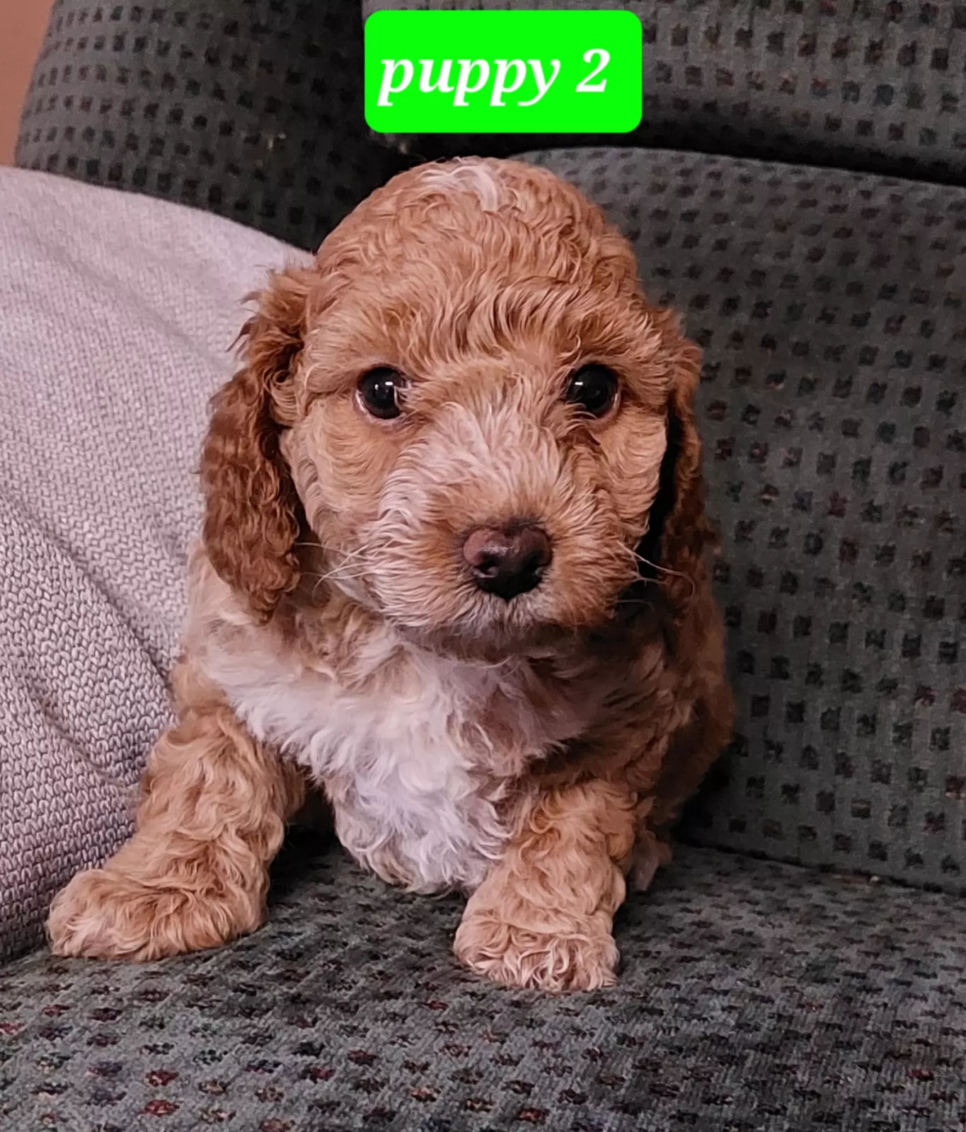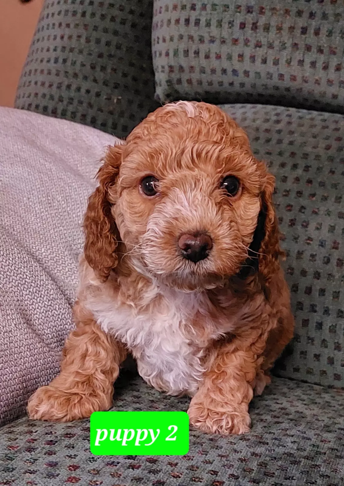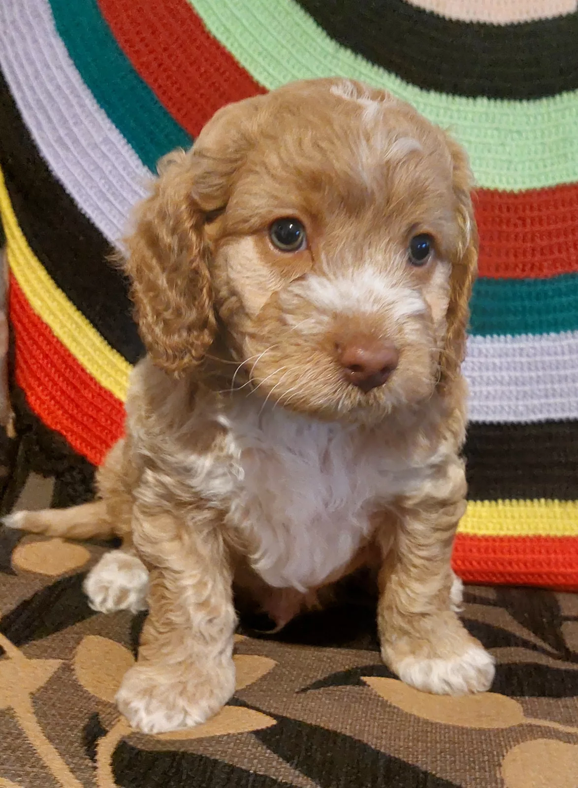 The mother is a 3-year-old Caramel & White Medium Miniature Spoodle and Father is a 3-year-old Red & White Medium Miniature Poodle.