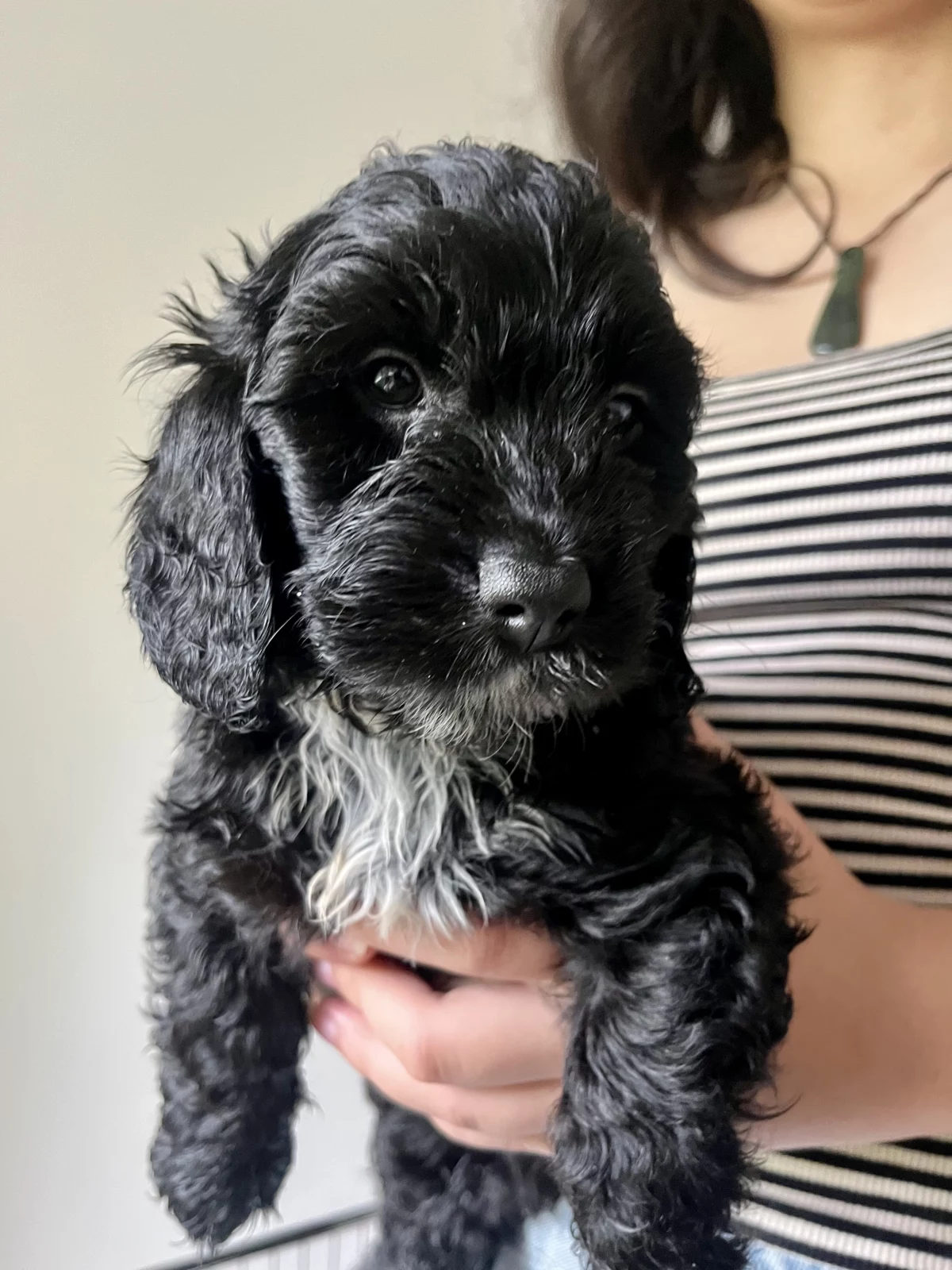 Expected to be 12-14kg with a soft curly woollen hypoallergenic coat.