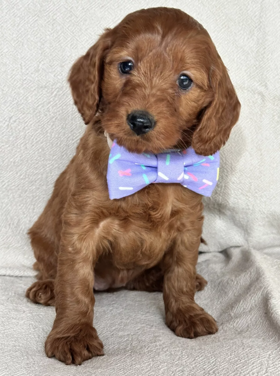 Puppies of this quality, colour some with white markings/patches are very hard to find! They have great non-shedding coats. They will have curly to wavy coats.