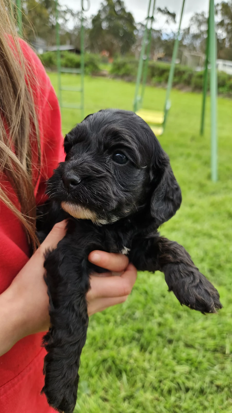 We have 1 female and the rest are boys — all are black coloured, and have been raised in our family home in Victoria.