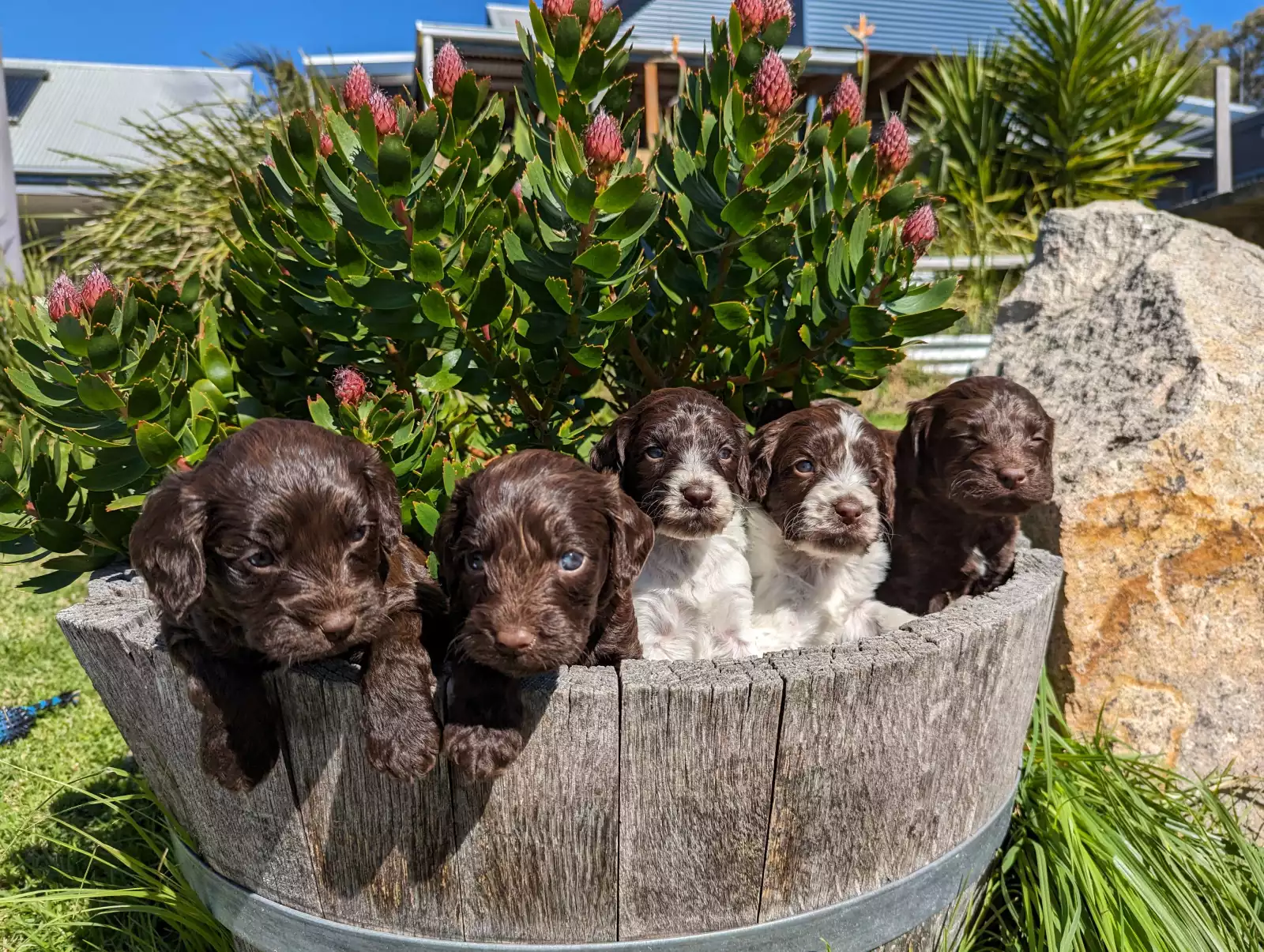 Our much loved family pets have produced another exceptional litter of puppies. Born on 4 August 2023. These little 1st Generation Springerdoodles have been, Microchipped, Vaccinated & Vet checked and wormed fortnightly. They have individual health reports from the vet. Our Springerdoodle puppies are raised in a loving home environment, receiving the utmost care and attention from the day they are born. They are highly trainable and make fantastic companions for families, individuals, or even therapy work.