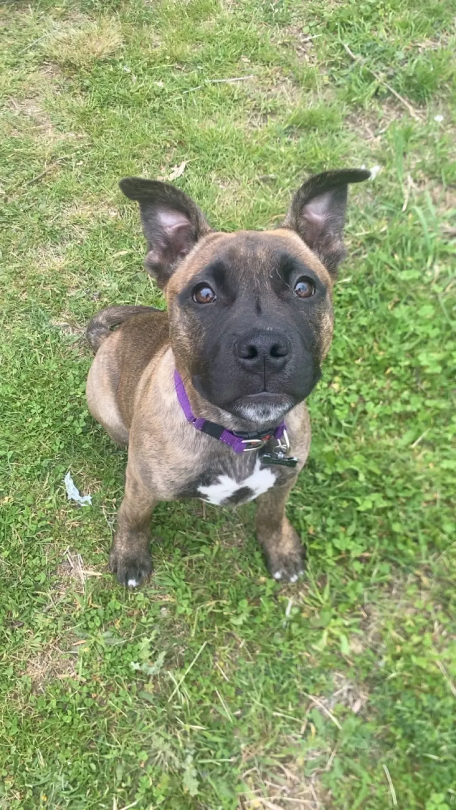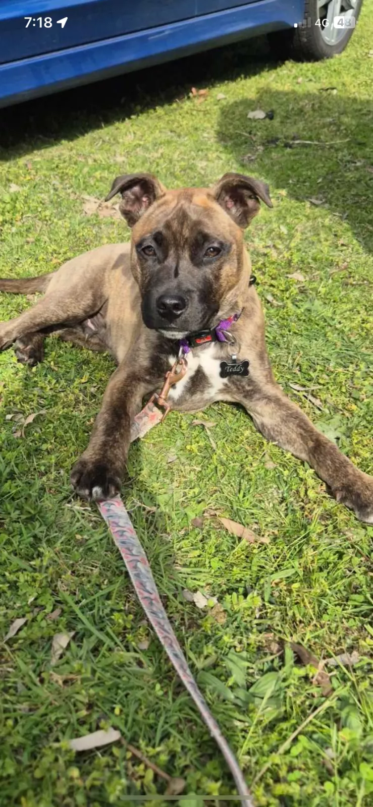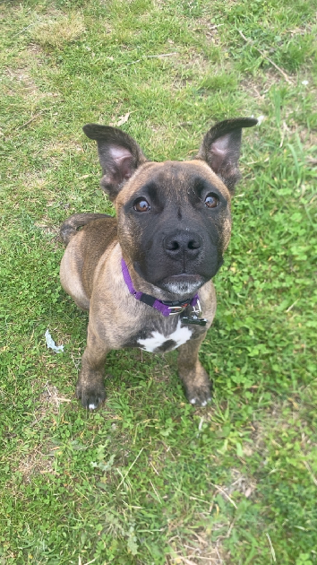 Meet Teddy - a brindle Staffie x pup,