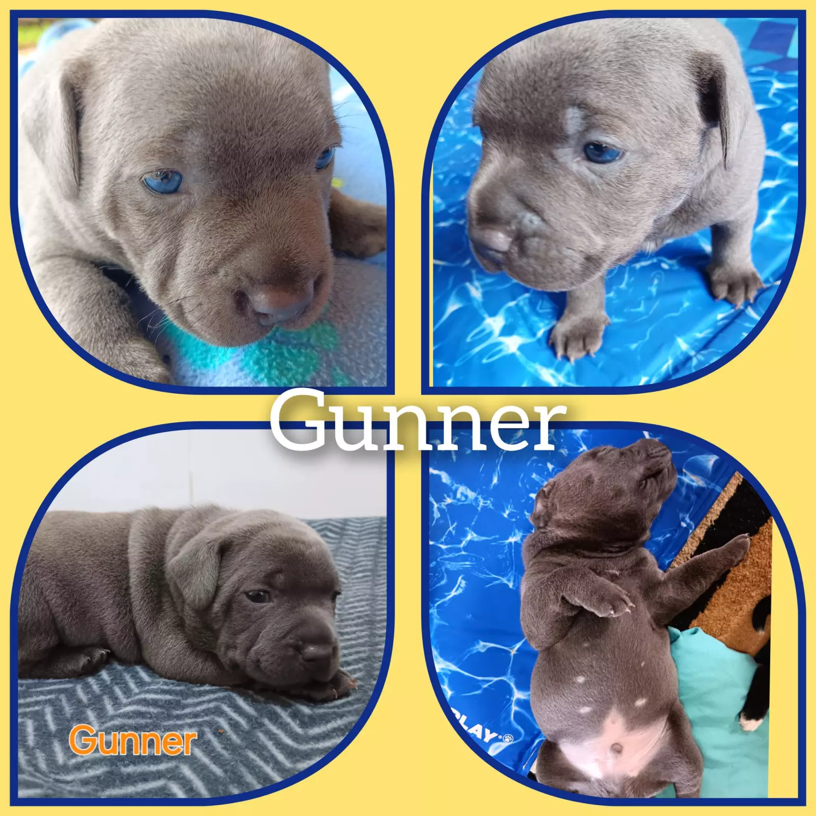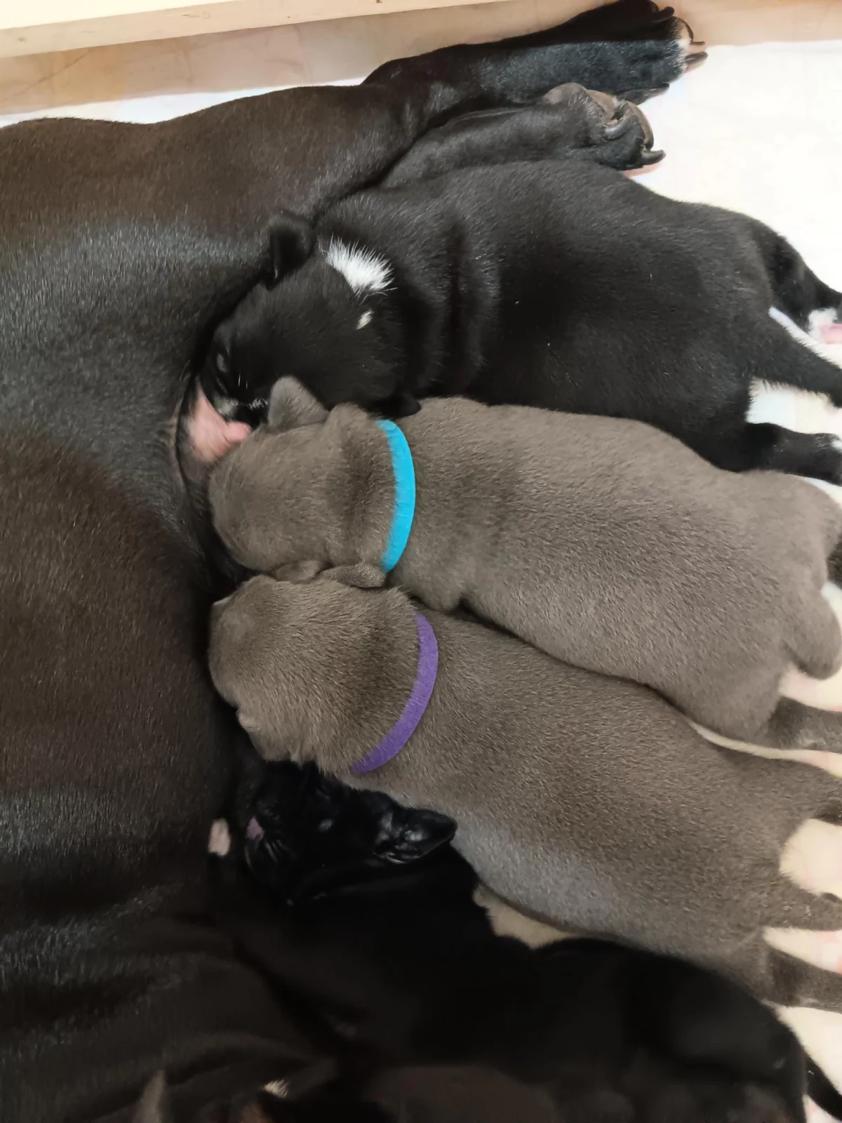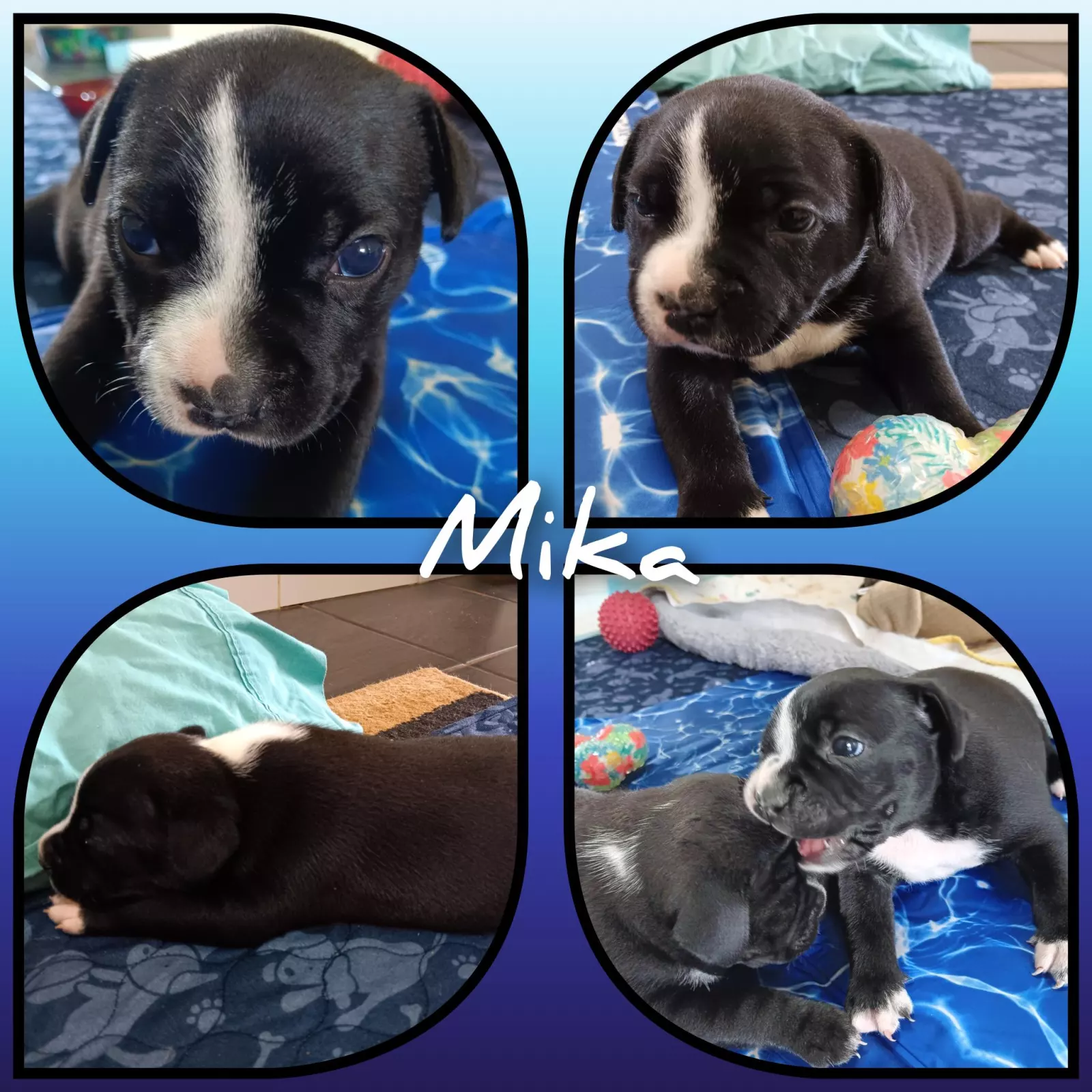 Four stunning English Staffordshire Bull Terrier puppies (4 weeks old as of 06/02/25). One blue boy, one blue girl, two black girls. These beautiful pups were born on 9th January 2025 and are ready to go to their forever home on 6th March 2025 at 8 weeks old. Father is a Pedigree papered Blue English Staffy (Aceblue Stewie Griffin). Mother is a Purebred English Staffy (Black with white collar). Puppies are being raised in a loving home (they are our babies), are fed high quality food and are socialised well with children. Puppies have lovely natures, love cuddles, exploring and are starting to toilet train. Pups are wormed fortnightly and will be vet checked, microchipped and vaccinated at 7 weeks old. To go to a loving family who has time to play with them.