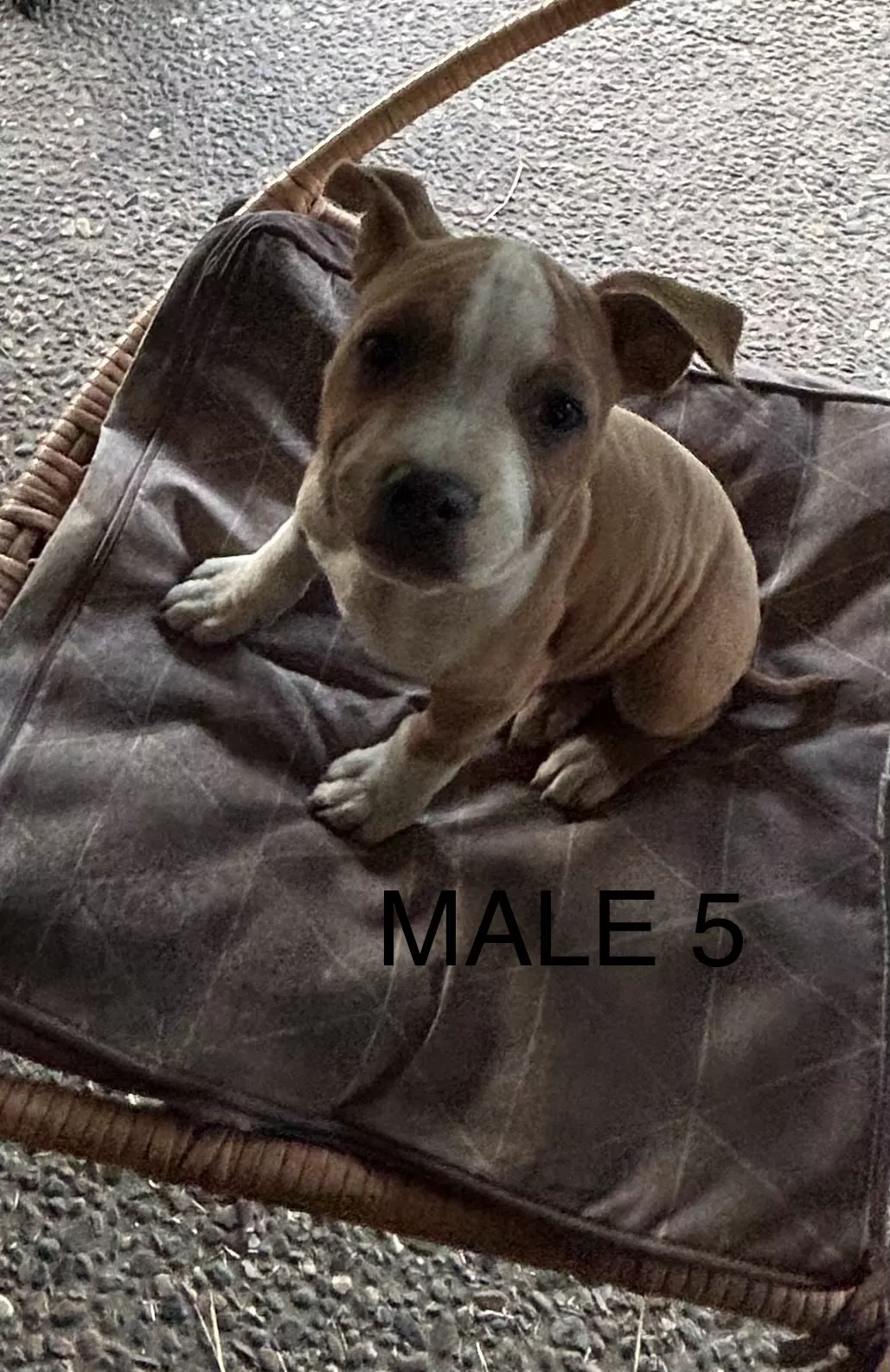 A mix of American and English Staffy breeds, they carry the best traits of both – loyal, affectionate, playful, and intelligent. Each pup has a confident and loving temperament, making them ideal companions for families or individuals. They enjoy cuddles, playtime, and thrive on human attention.