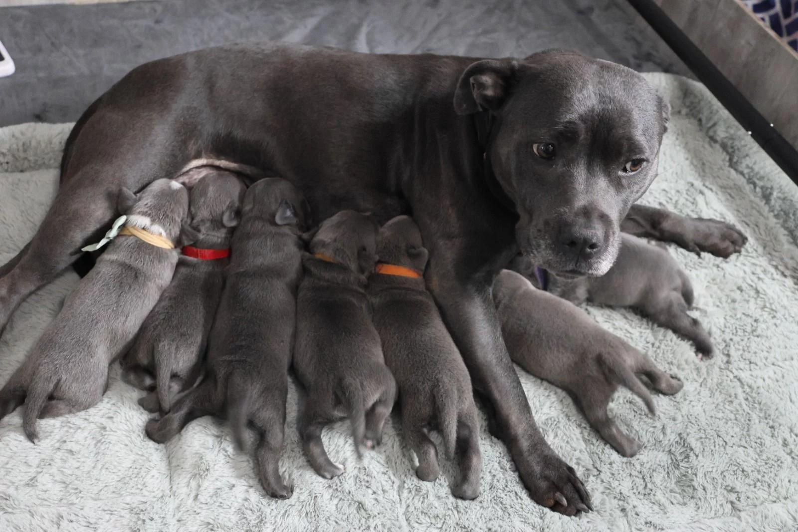 We’re so excited to share that Zoey’s beautiful litter of Staffordshire Bull Terriers has arrived — and a few of these gorgeous pups will be looking for their forever homes! 💛