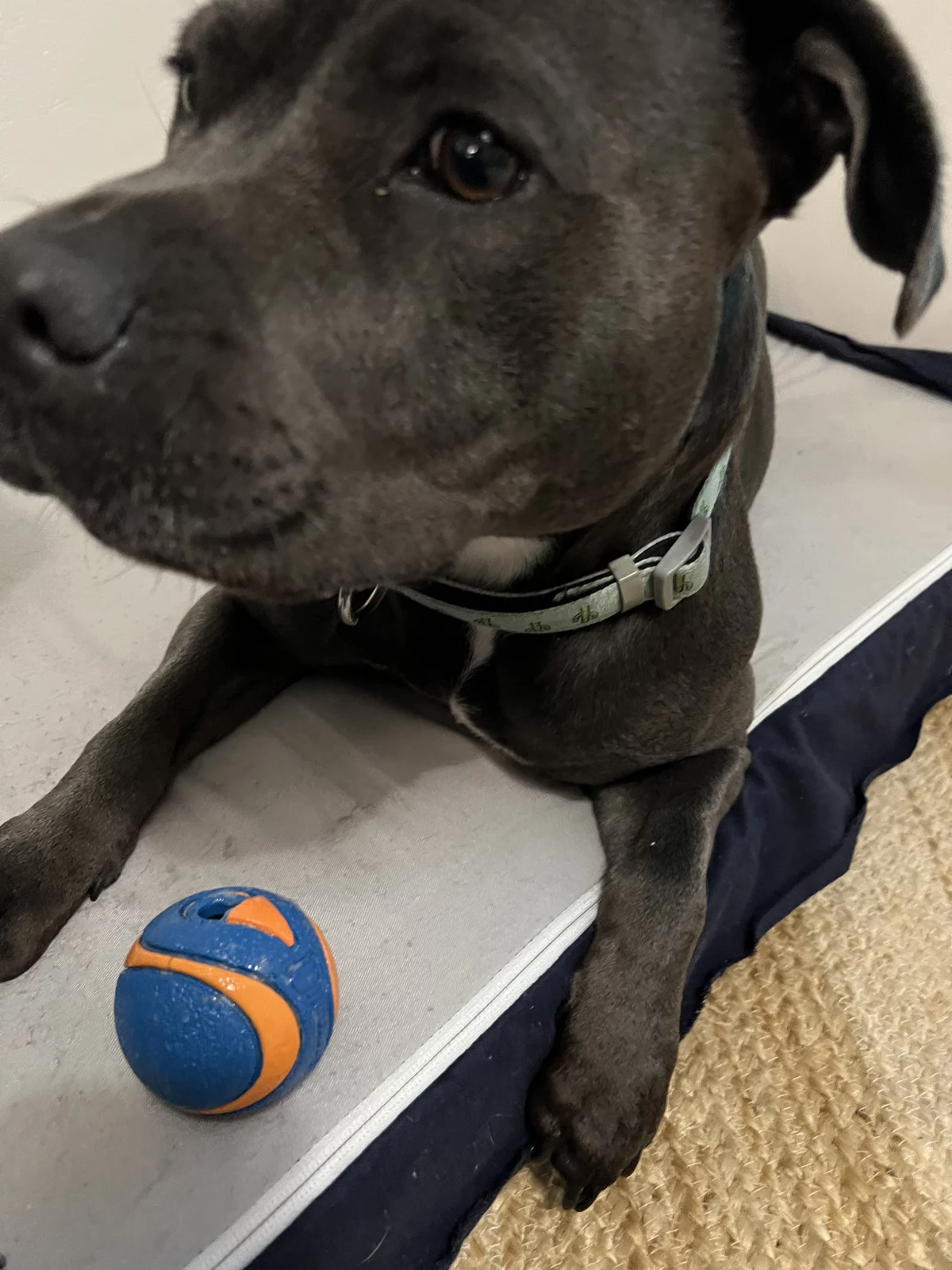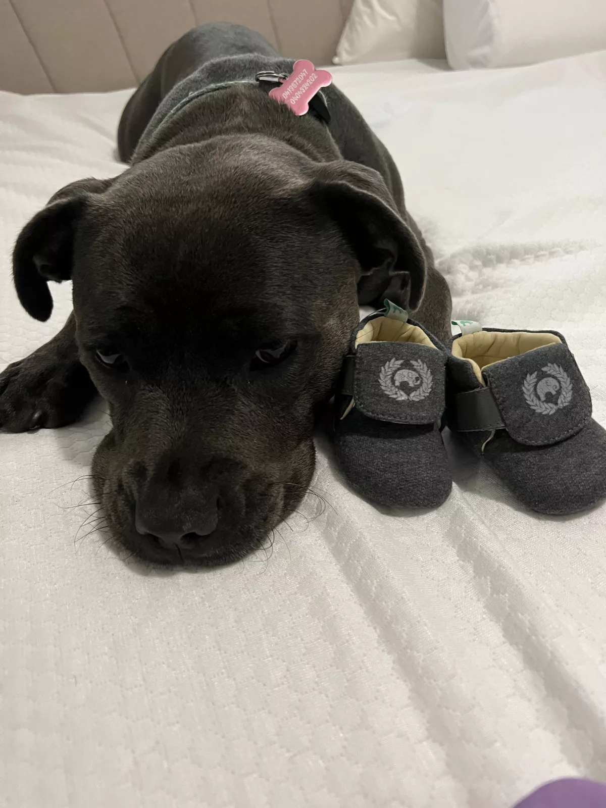 We’re thrilled to share that our gorgeous blue Staffordshire Bull Terrier is expecting her first litter of puppies at the end of June! 💙🐾