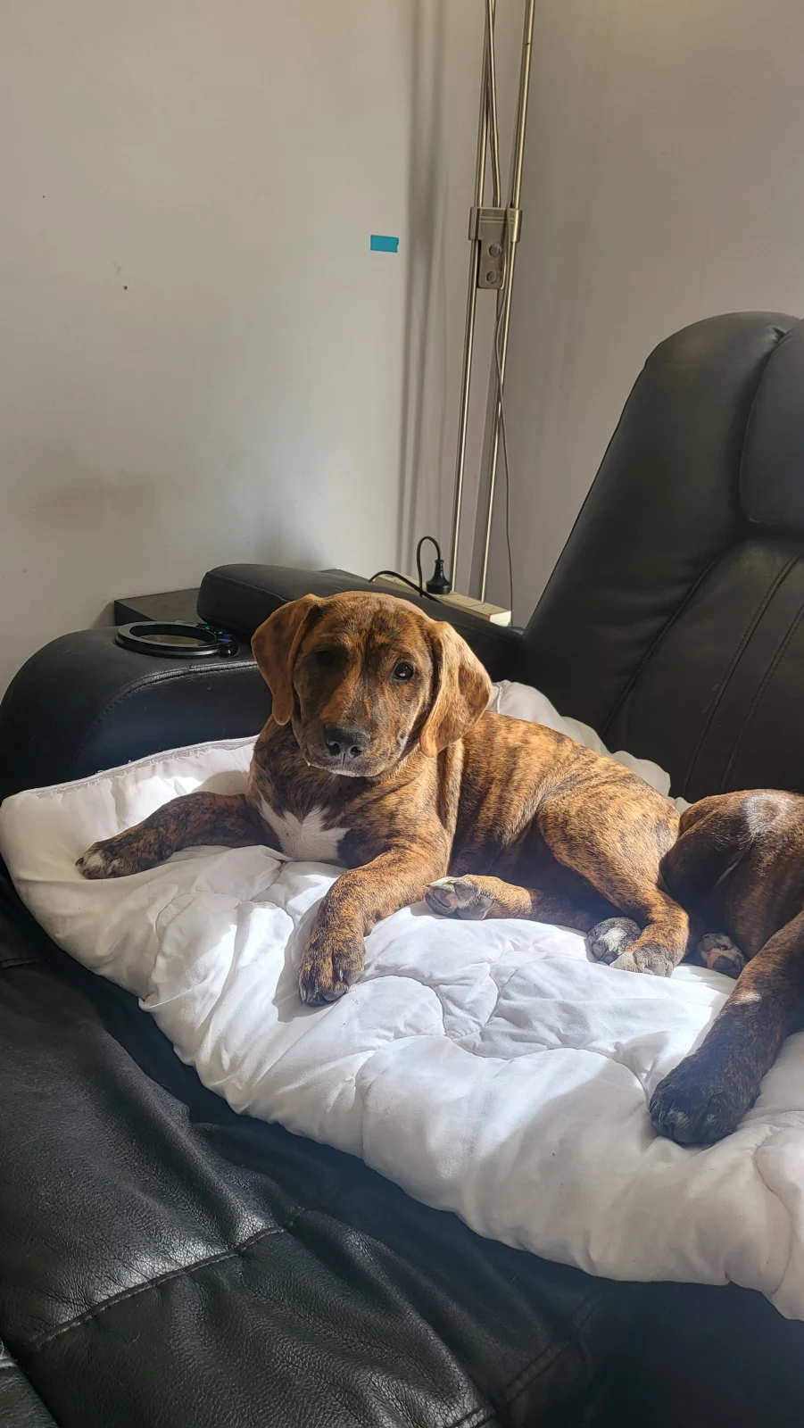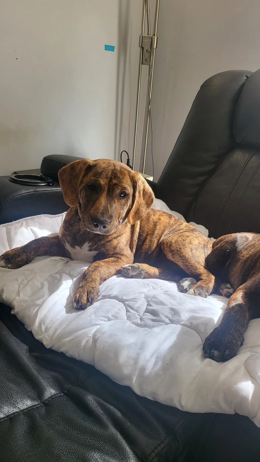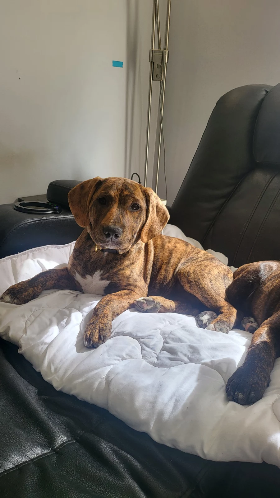 Dogs have access to: warm bedding, water at all times, ample space to exercise, natural light