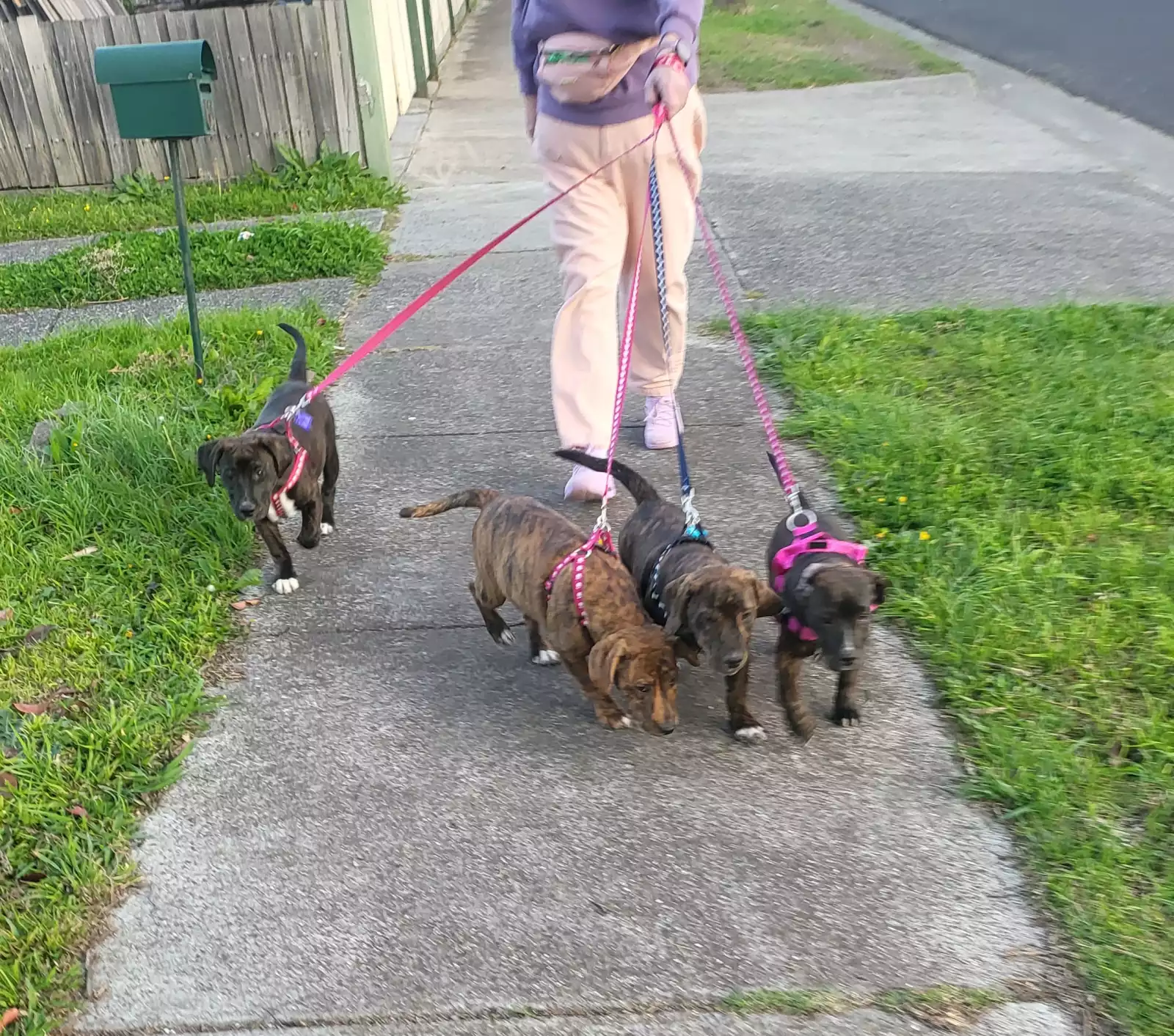 These Pups are happy, loving and well adjusted. They are responding very well to lead and harness training. They are toilet trained with free access to the back yard via a doggy door and knowing how to use puppy pads.