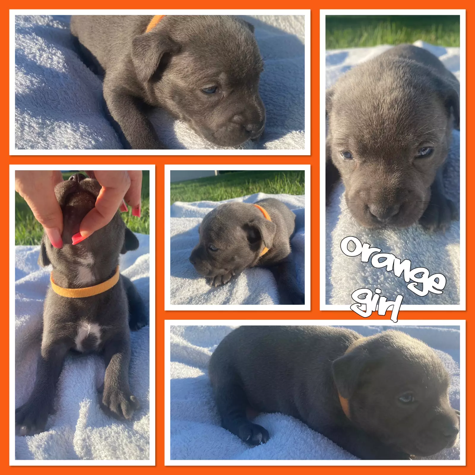 We have 2 stocky pure bred English Staffy puppies available from a litter of 6, 1 female, 1 male.