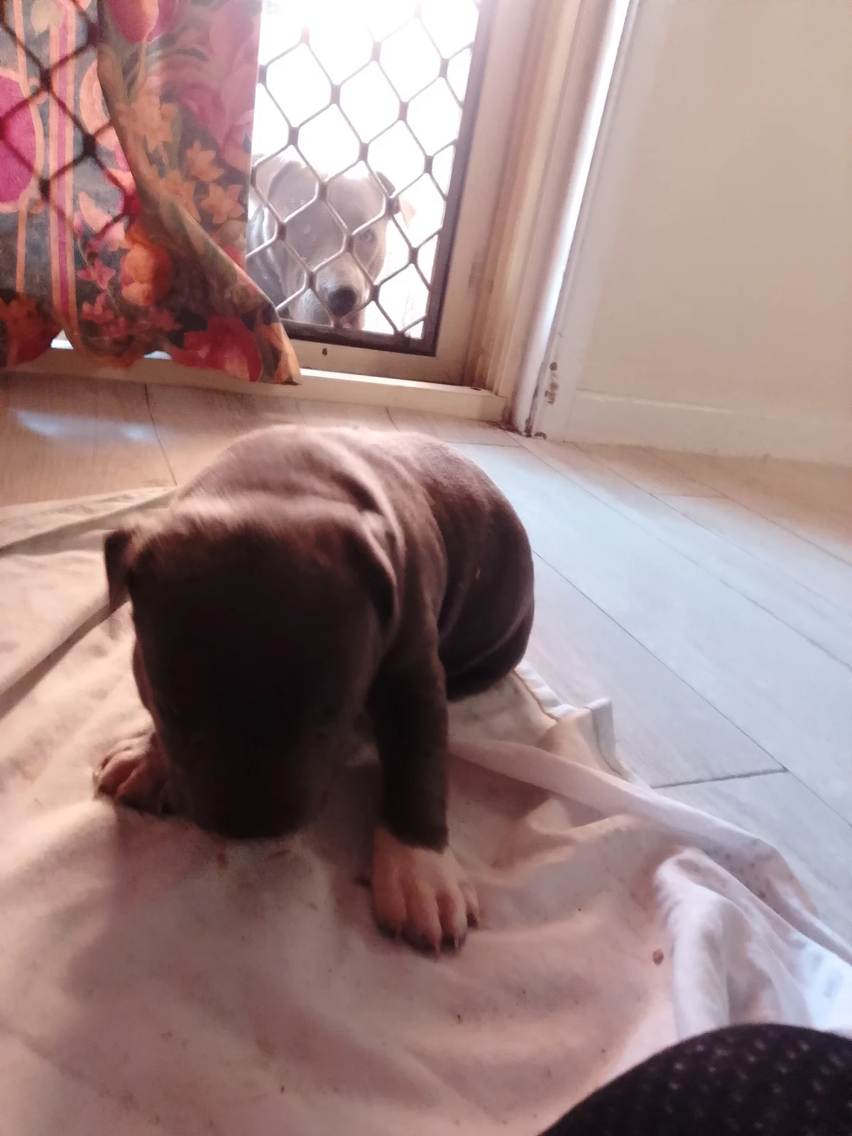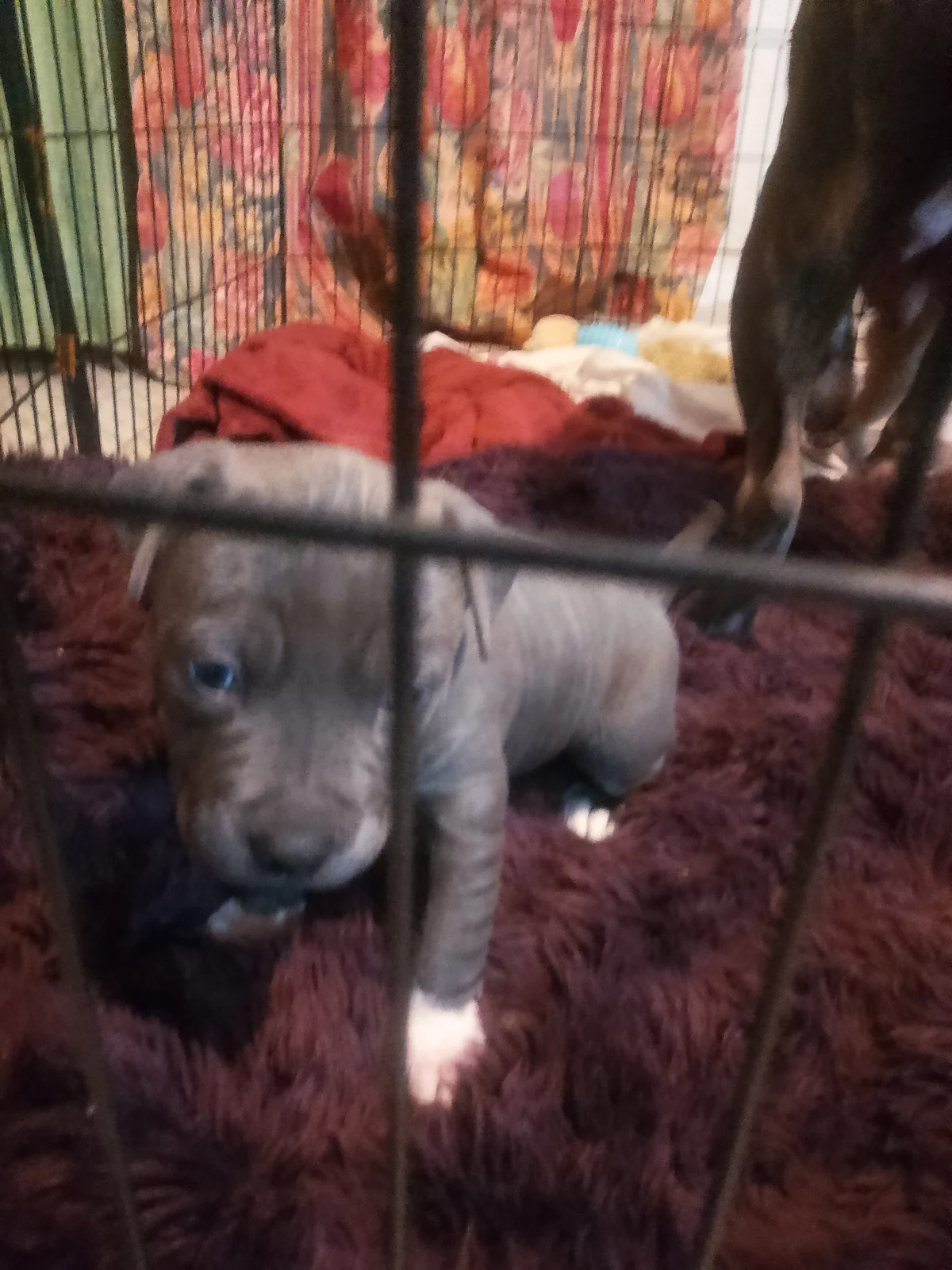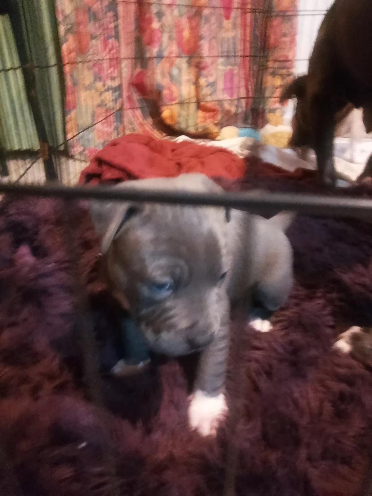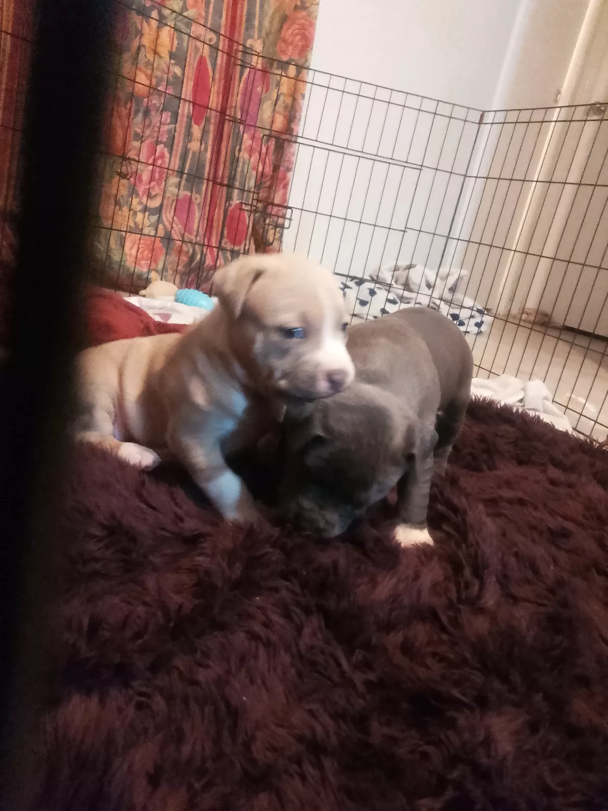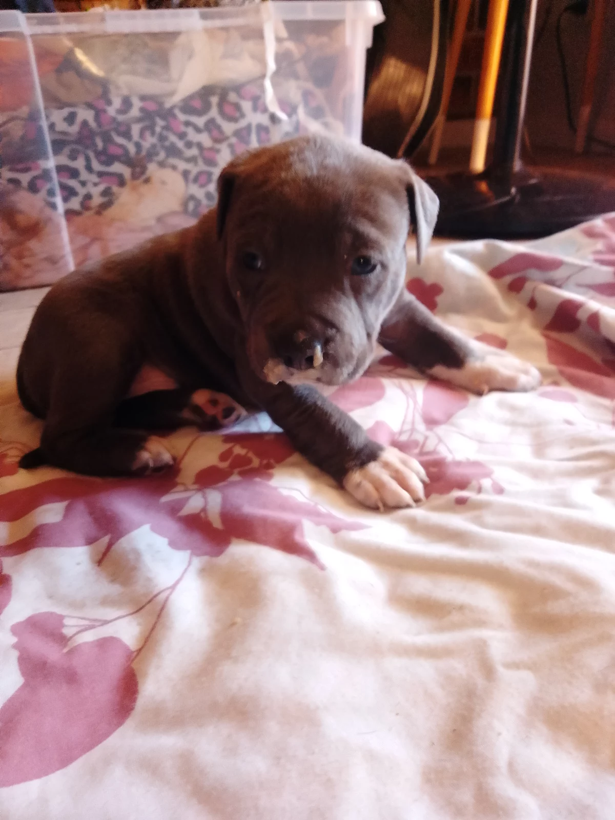I have a blue female staffy pup for sale she is 5 weeks old very stocky and stunning little girl she is very playful has been brought up around children an she was born from only a litter of 2 girls she is now looking for her forever home $45000 can send more pics on request 0411144528