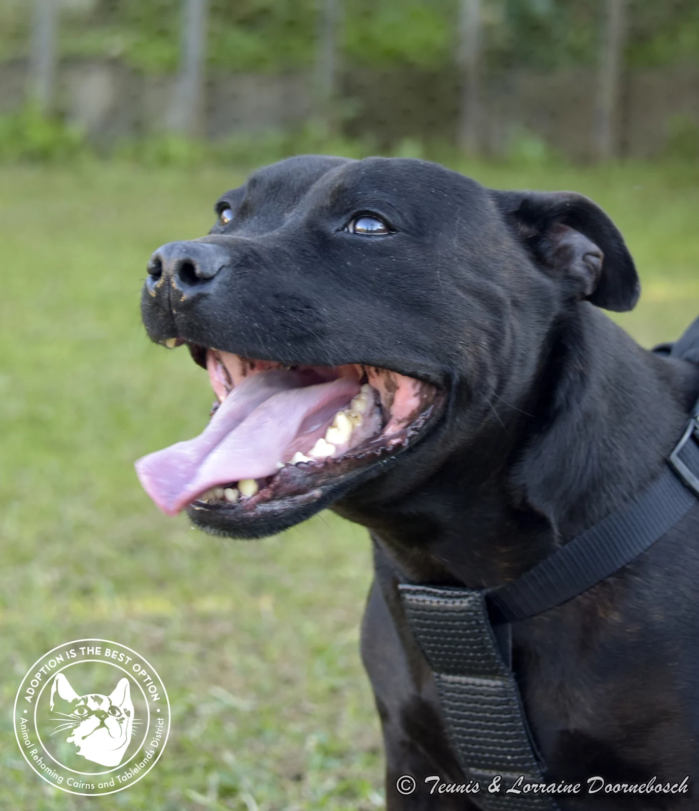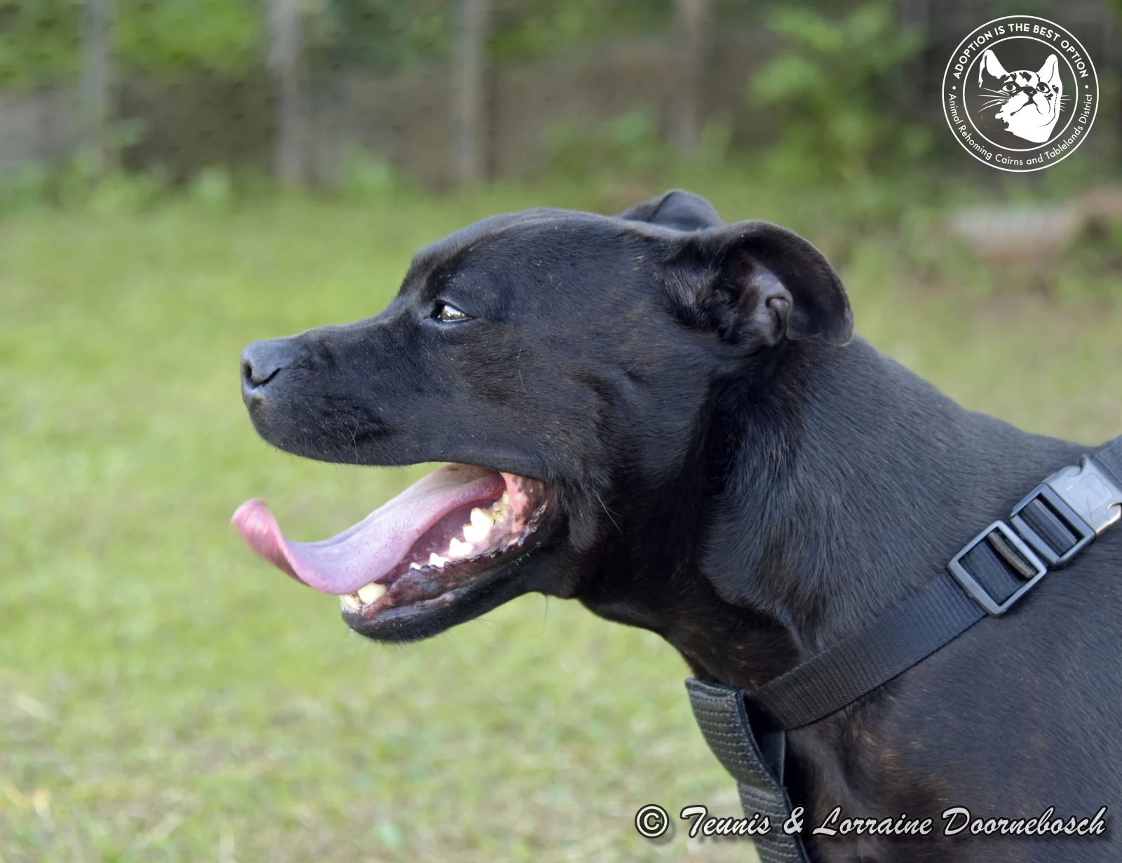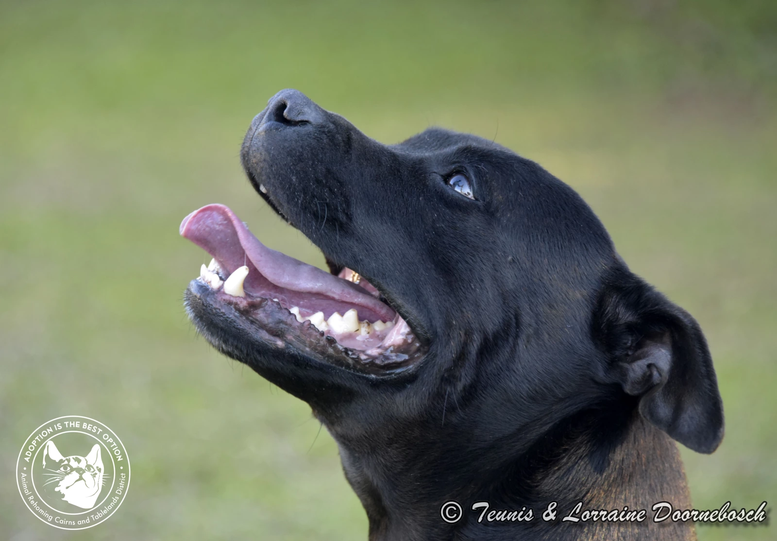 Although his name may suggest that he's boss dogga, don't be deceived. Alpha is a very happy chappy who has not a mean bone in his body. He is very keen to play with other dogs, isn't a barker or growler and just wears that happy face whatever he's doing. Alpha adores kids and would be the sort of dog that would follow the kids to school and hang about the playground with them, so you'll need good fencing to keep him at home. Don't let his age put you off either. Alpha is very healthy and young for his age. Just look at those teeth. He won't be needing to see the dentist any time soon :-) Alpha will make a wonderful family pet.