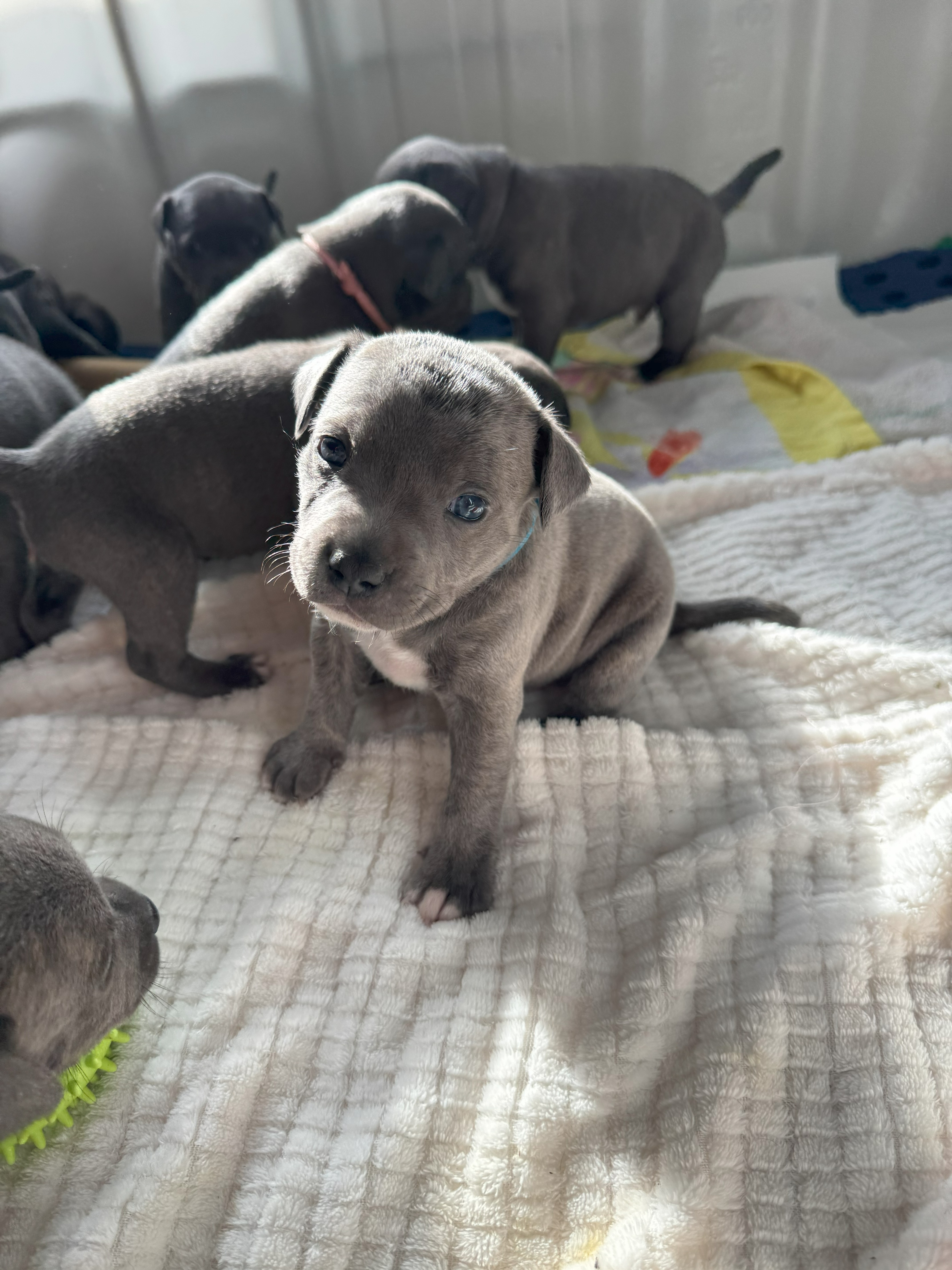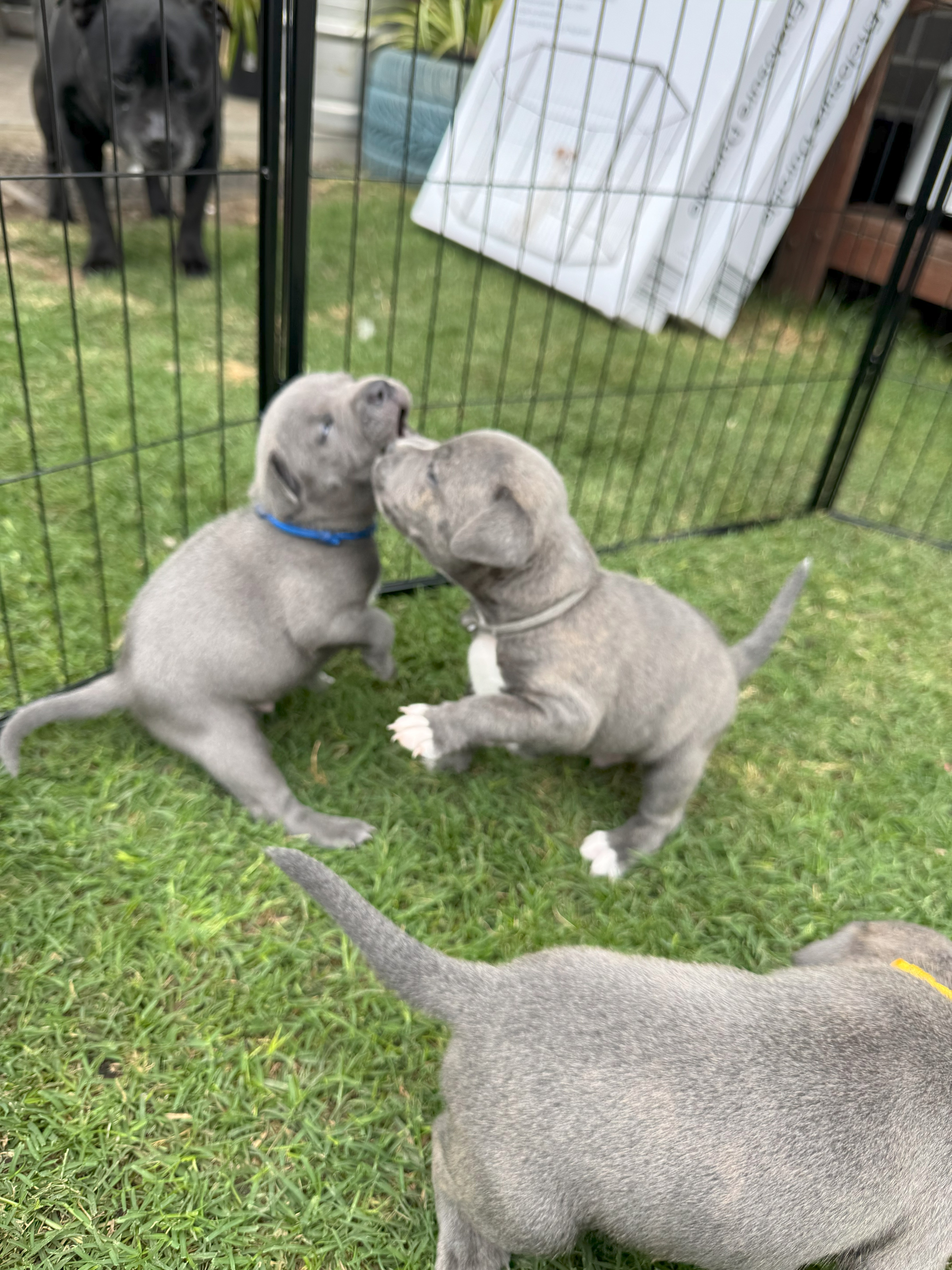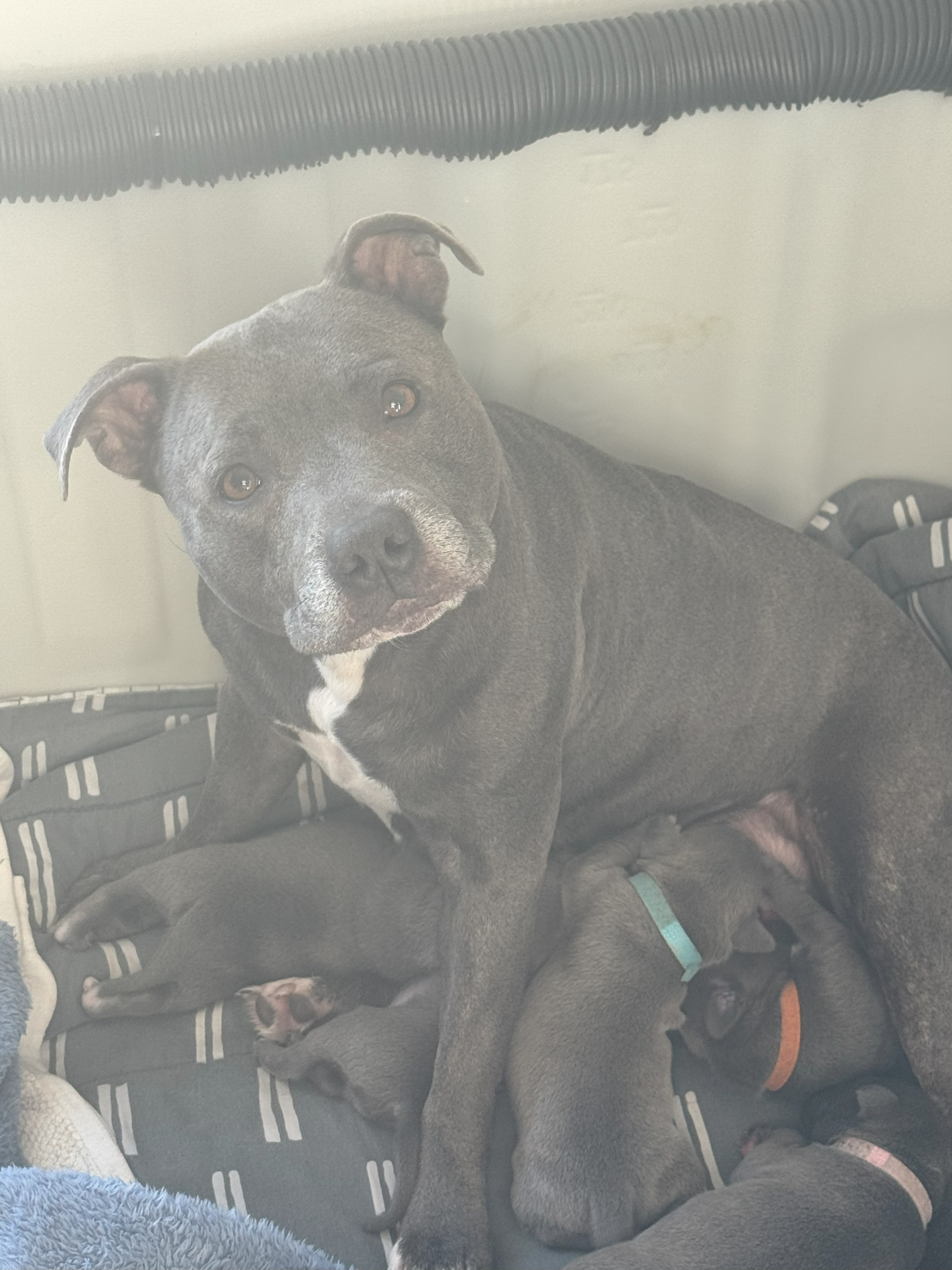 Parents are pedigree pure bred BLUE Staffys from champion bloodlines. Both are 3 years old and have the most beautiful temperament, features and loyalty. They are not related.