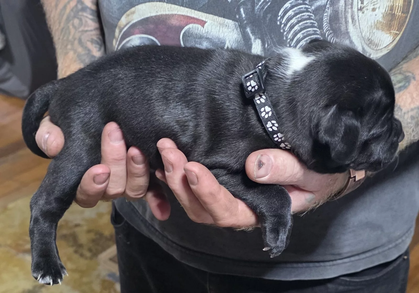 JAZABELBLUES is happy to announce the safe arrival of 4 beautiful black, white and brindle puppies, we have 1 boy available for his forever homes in about 3 weeks. The parents are Pepper and Yoda.