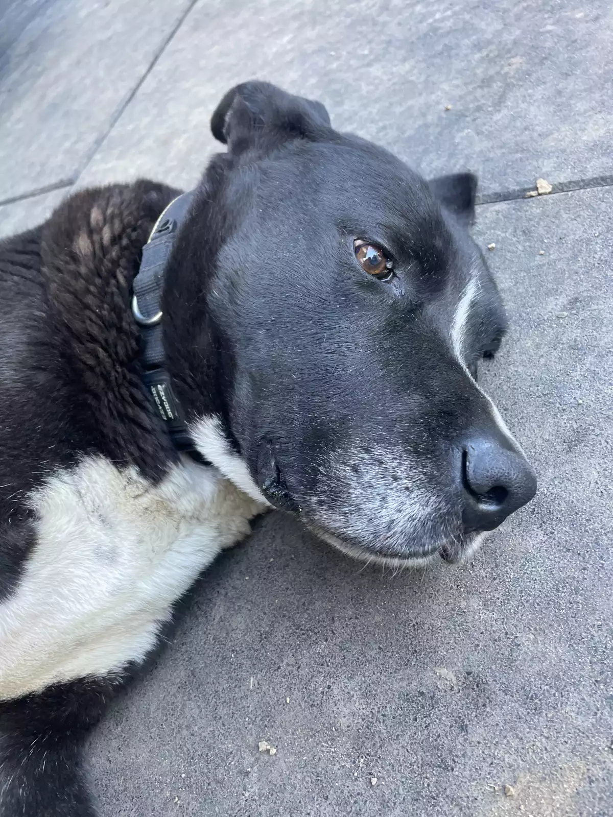1 dog, 8 year old male. Black and white in colour.