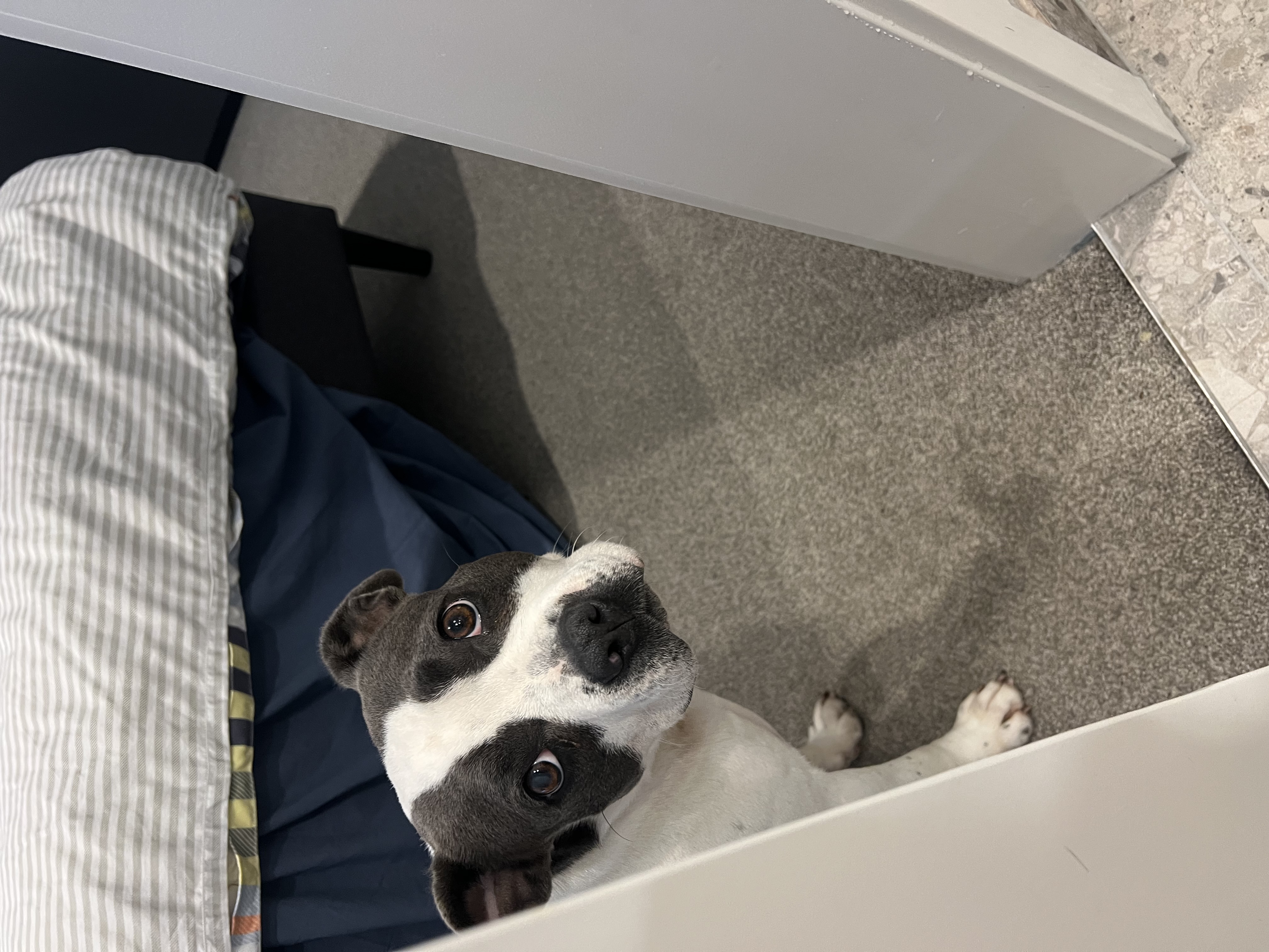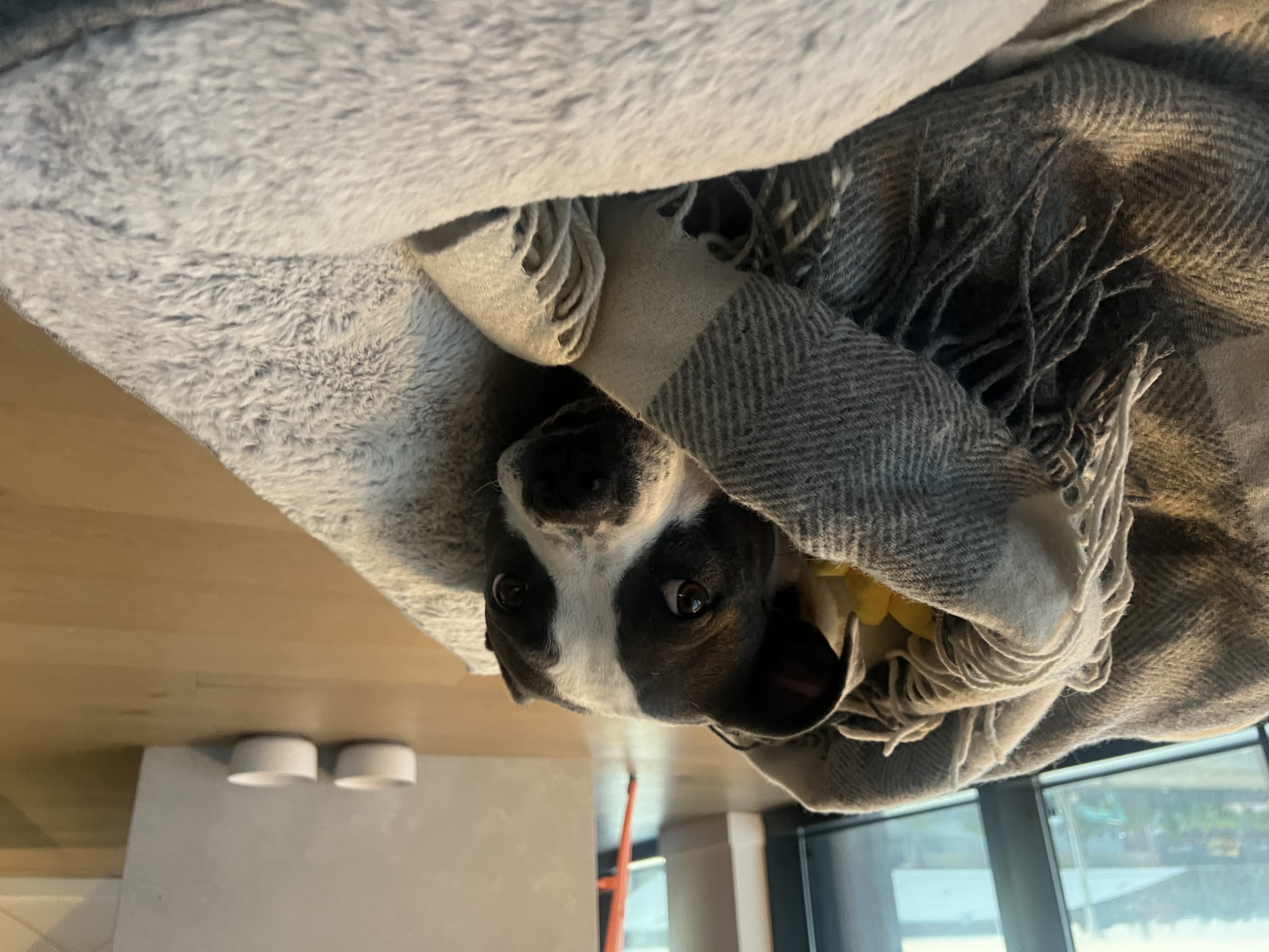Missy loves other dogs and attends daycare once a week. She enjoys regular walks, beach outings and is generally social with other dogs. She is quite flexible on sleeping arrangements and happy just outside the bedroom door, beside the bed, or on the bed! She is an inside dog.