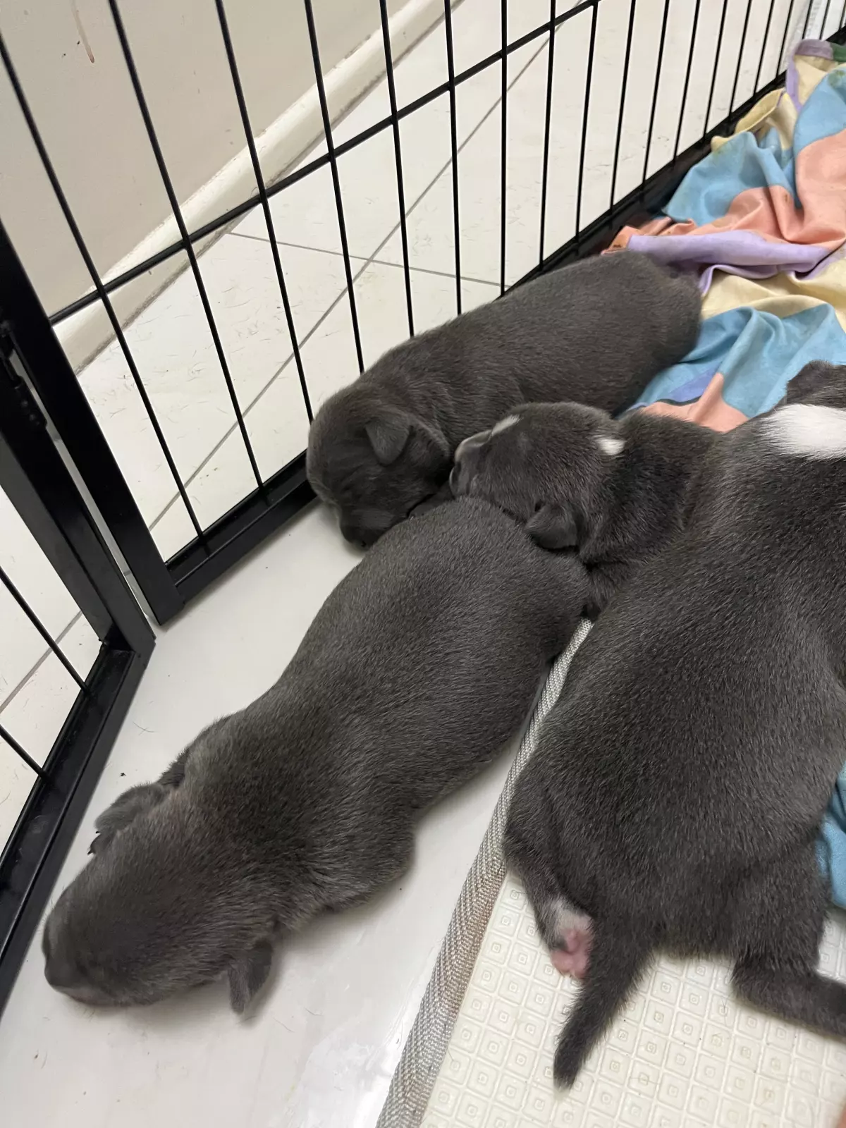 Dogs have access to: warm bedding, water at all times, ample space to exercise, natural light