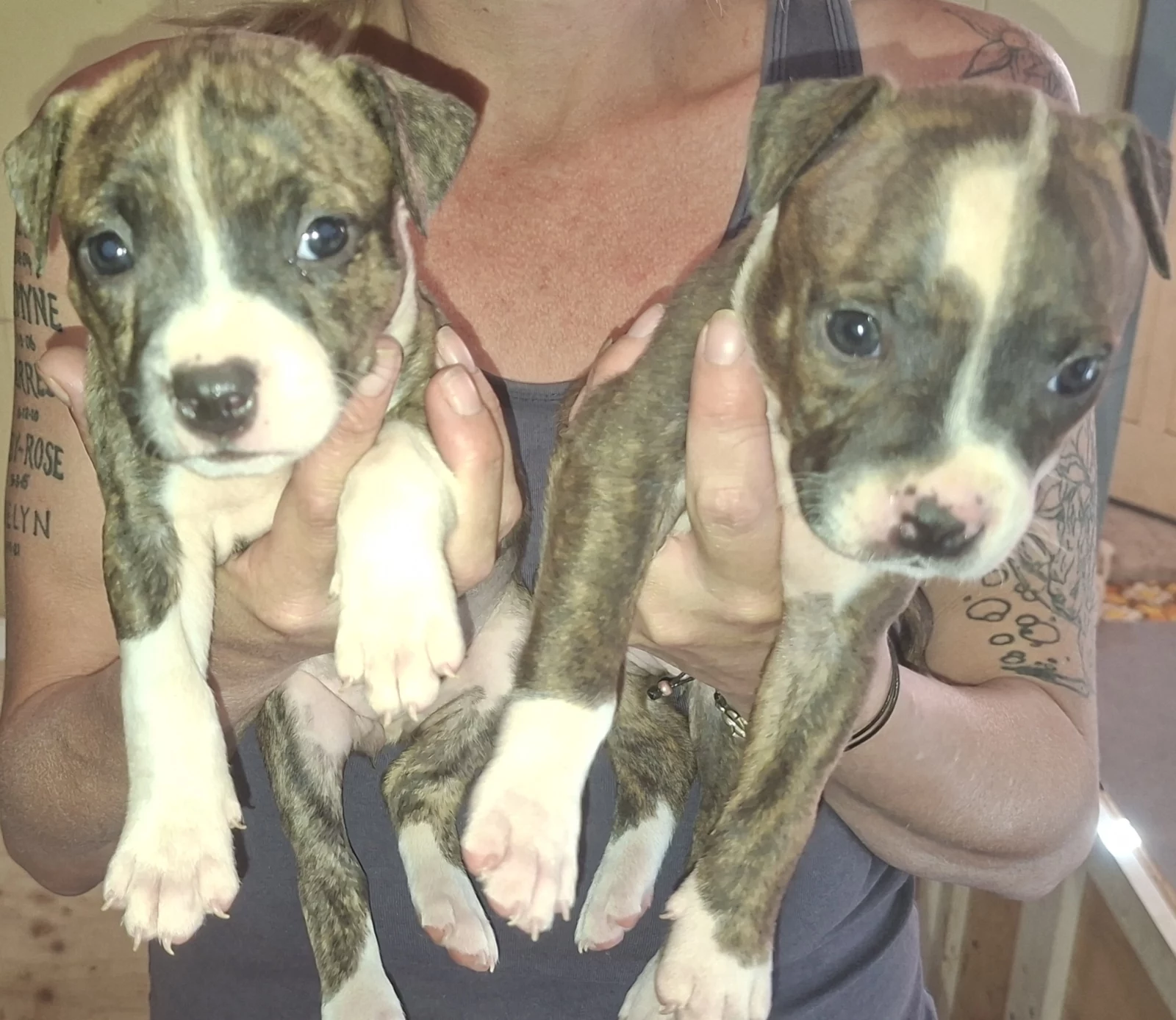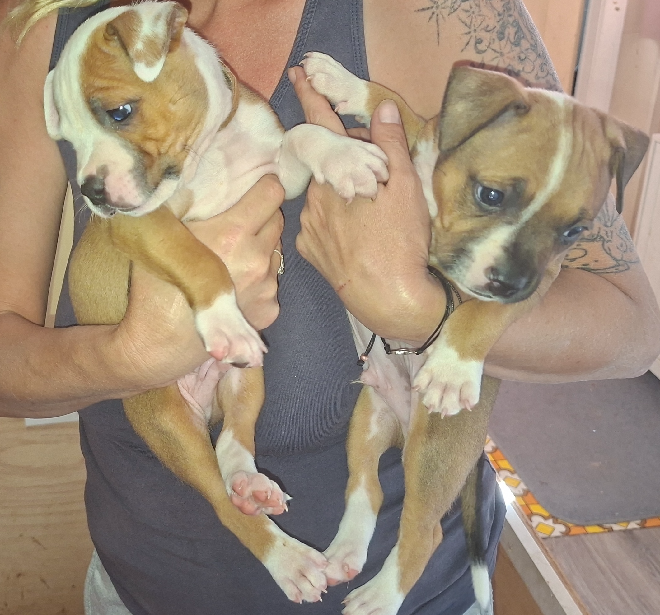5 Staffordshire Bull Terrier puppies looking for their forever homes. There are 2 brindle females, 2 red males, and 1 brindle male available. All puppies are extremely friendly and have been raised around kids, people, dogs, and cats, making them well-socialised and easy to adapt into family life. They have beautiful natures, just like both parents, who can also be viewed. Puppies have been vaccinated, microchipped, vet checked, flea treated, and wormed, ensuring they are healthy and ready to go. Brindle puppies are priced at 750, and red puppies at 1000. A great opportunity to welcome a loving, well-raised Staffy into your home.