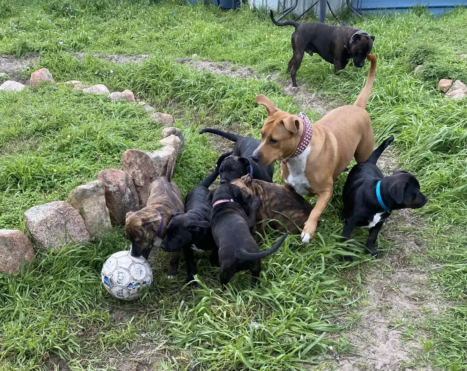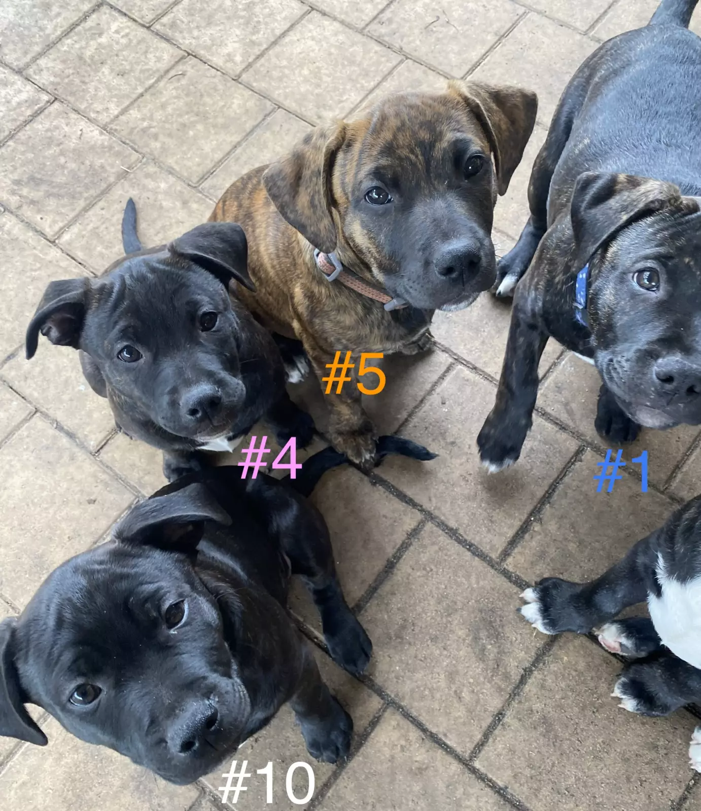 I have 7 puppies looking for their forever homes. 3 males & 4 females sired by Loki (Staffordshire Bull Terrier) & Freya (American Staffordshire Terrier) who are our much loved family members.