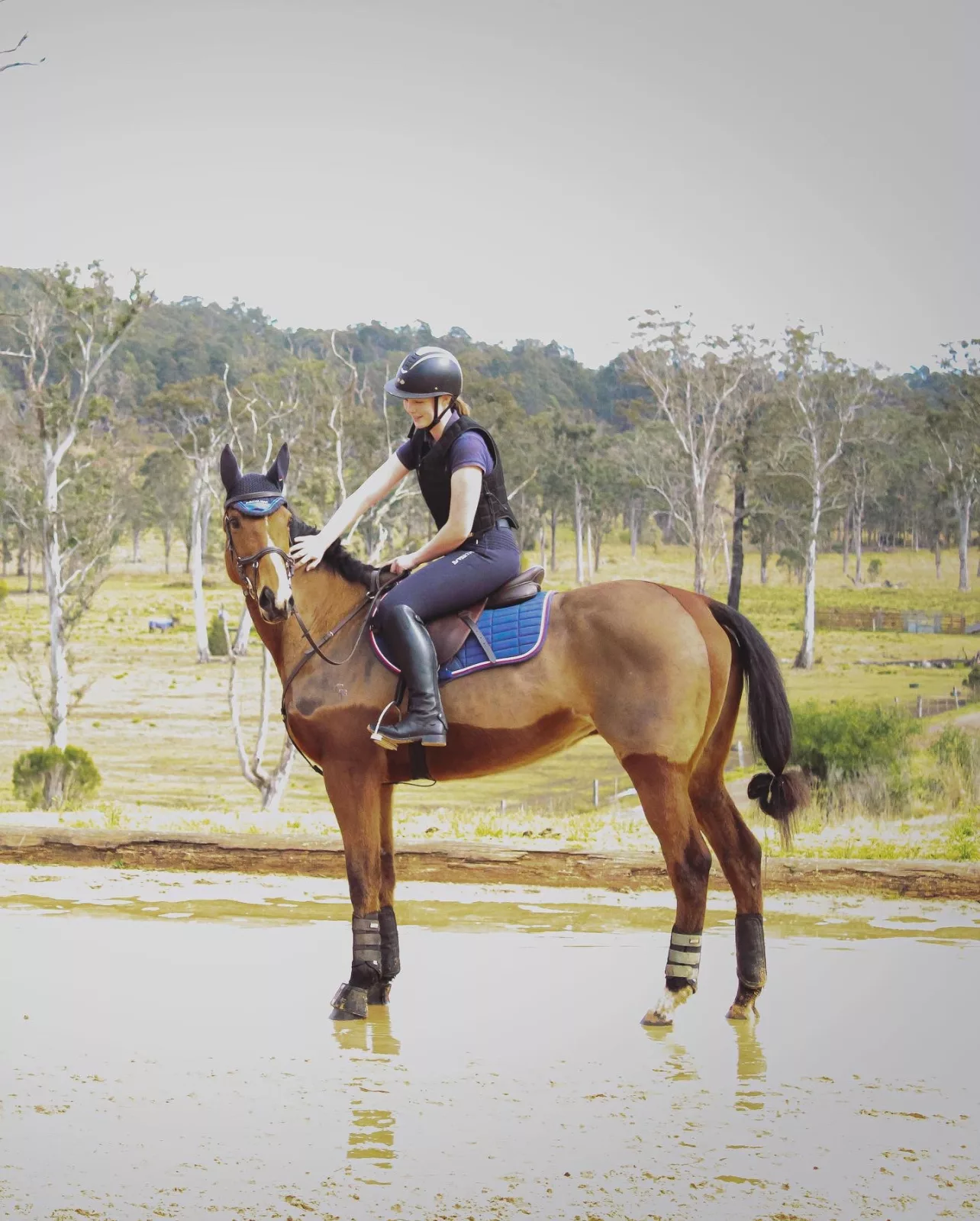 She has been out to cross country training and to arena hires and lessons off property and has always enjoyed the outing and jumps and she floats like a dream on short and long trips.