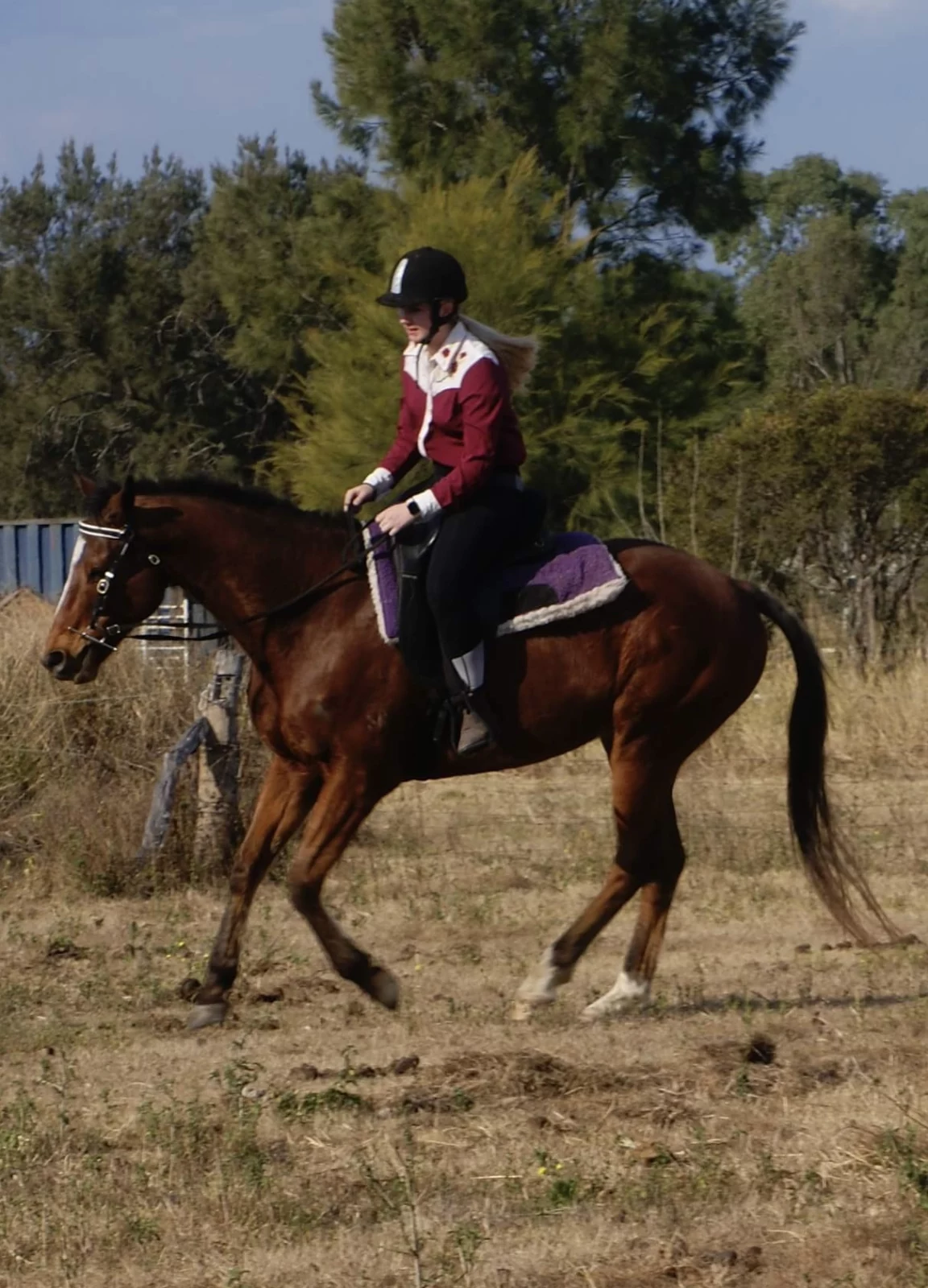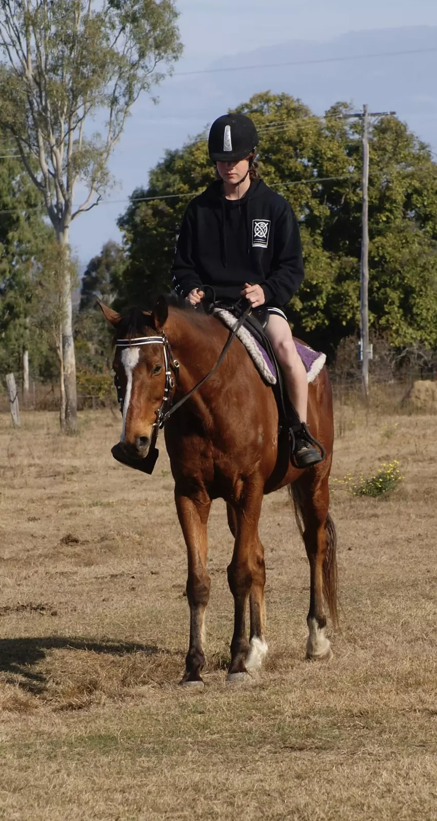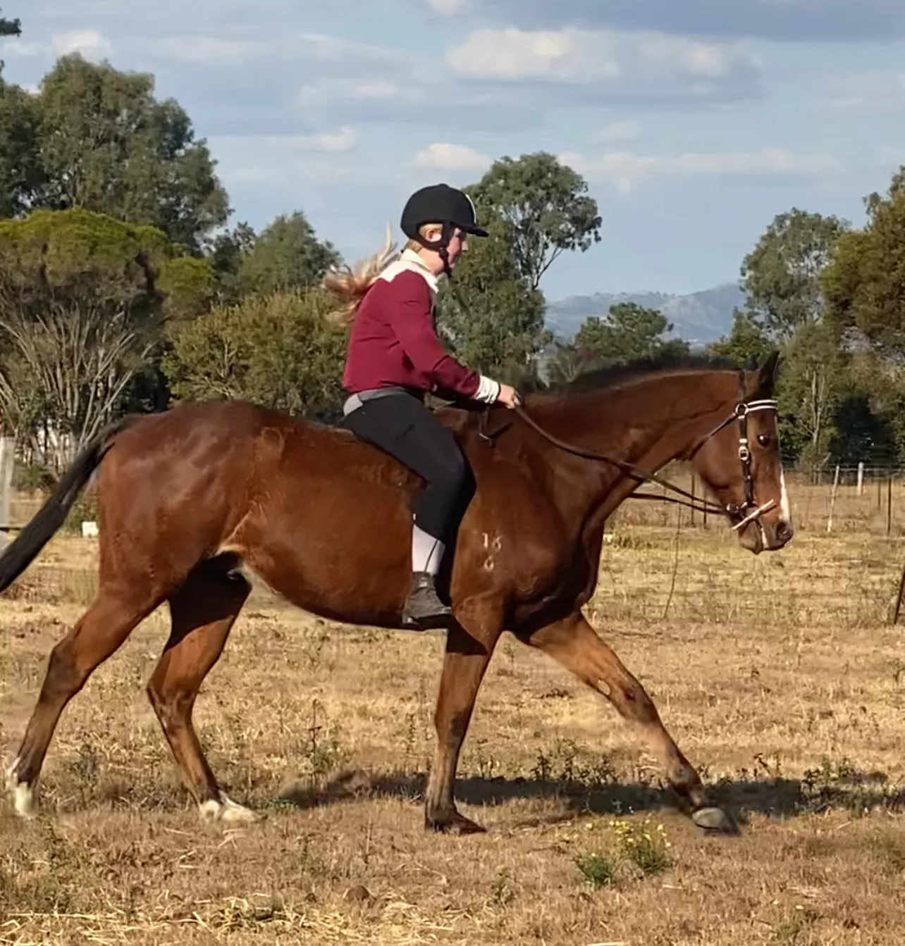8 year old ott gelding. He has been off the track for approximately a year and a half. During this time I have taken him to many outings like sporting days, gymkhanas, jumping, pony club days, used him as a horse to work around bucking horses with no issues, ridden along roads and at the beach. He absolutely loves swimming. Kirro has been ridden by people of all levels. My beginner partner has ridden him out on main roads and trails with no issues. My 13 year old sister who is learning to ride has taken him to pony club and he was a gem. Another friend who has never ridden a horse rode him with no issues.
