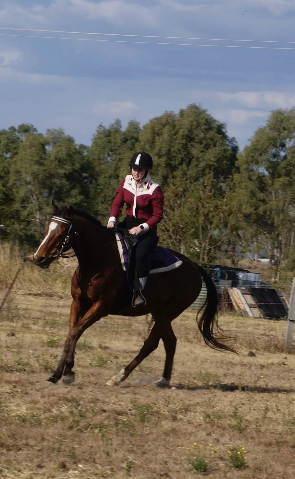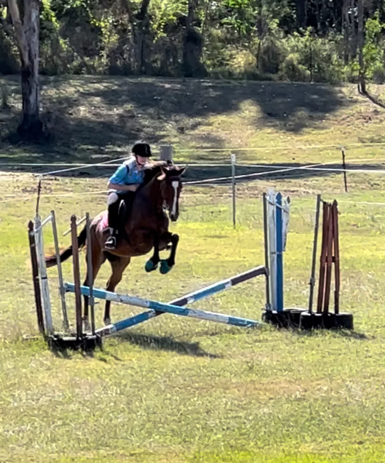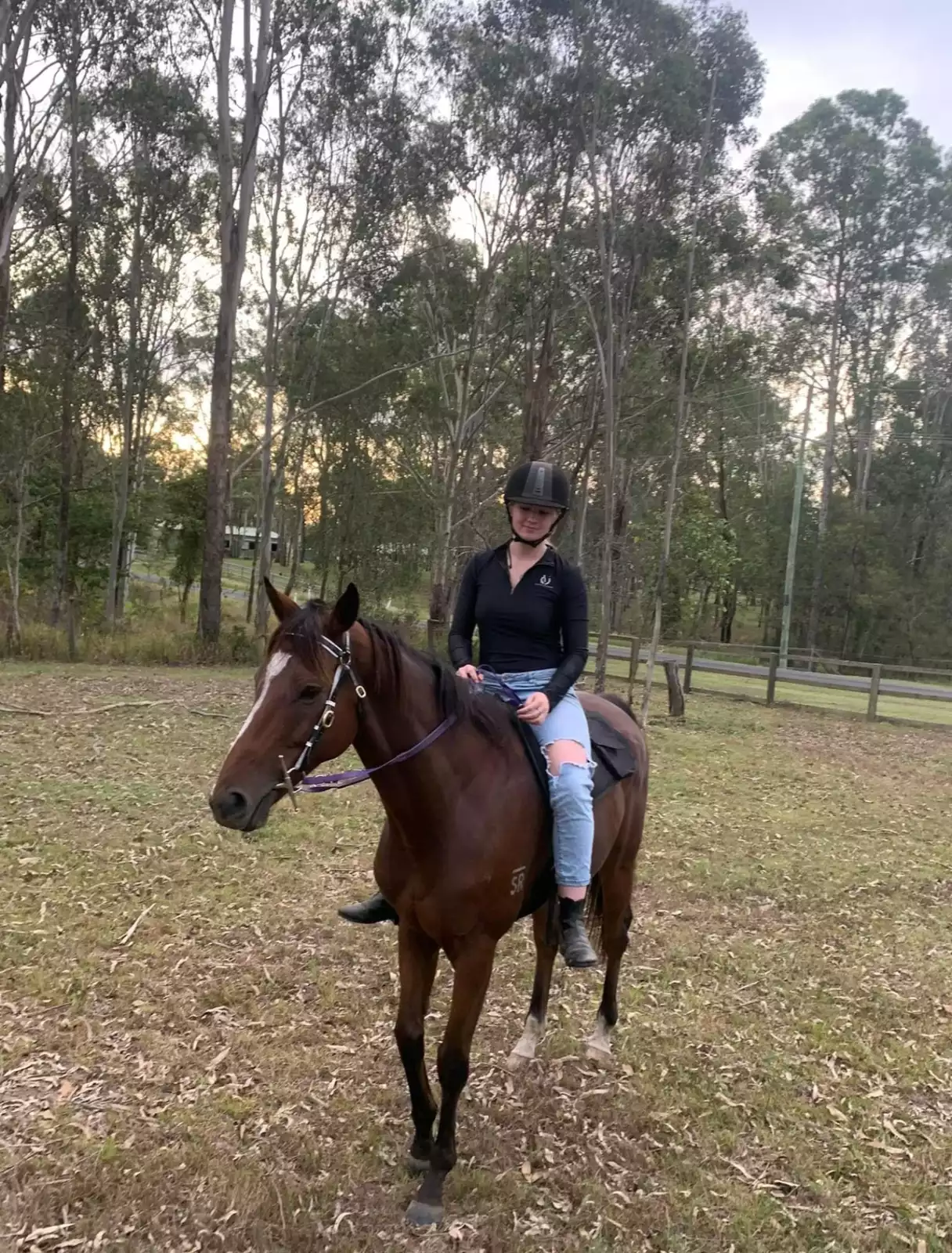 8 year old ott gelding. He has been off the track for approximately a year and a half. During this time I have taken him to many outings like sporting days, gymkhanas, jumping, pony club days, used him as a horse to work around bucking horses with no issues, ridden along roads and at the beach. He absolutely loves swimming. Kirro has been ridden by people of all levels. My beginner partner has ridden him out on main roads and trails with no issues. My 13 year old sister who is learning to ride has taken him to pony club and he was a gem. Another friend who has never ridden a horse rode him with no issues.
