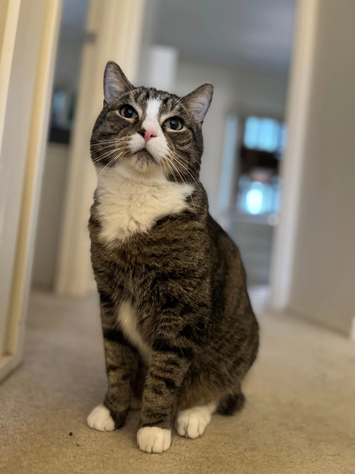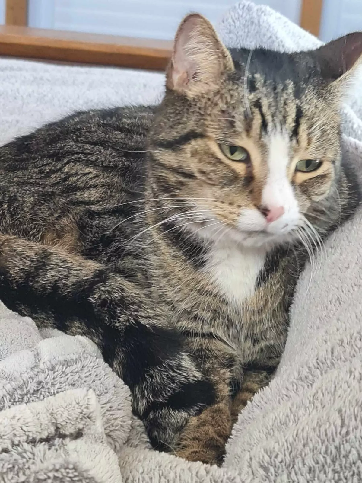 Meet Tiger, the sweet and intelligent domestic short hair who embodies the perfect gentlemanly charm. Born on December 11, 2014, Tiger is a distinguished cat who's accustomed to a comfortable, indoor life. He thrives in quiet settings where he can truly shine as a devoted and laid-back companion. His early years alongside an elderly gentleman have taught him the fine art of companionship—balancing independence with endearing loyalty.