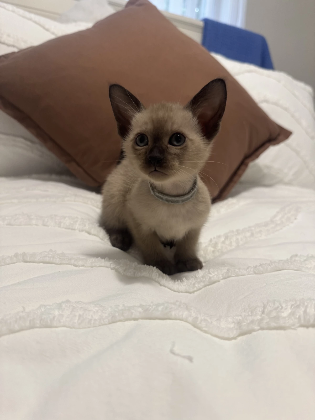 1 male and 3 females available: blue collar male, grey collar female, black collar female, and red collar female. These healthy, playful, and very affectionate kittens have been raised in a family home and are well handled, making them confident and social.