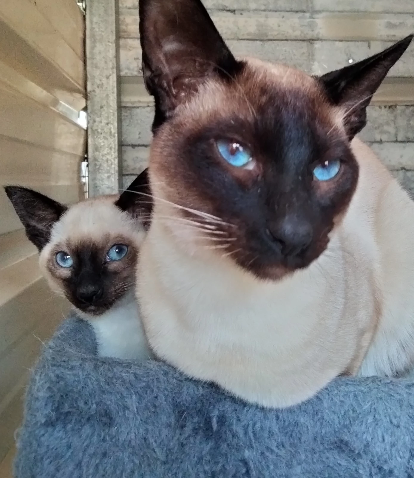 One is a seal Mink and the other is a seal point. They are both super affectionate and purry. Great with children and other pets. They are both ready to go now.