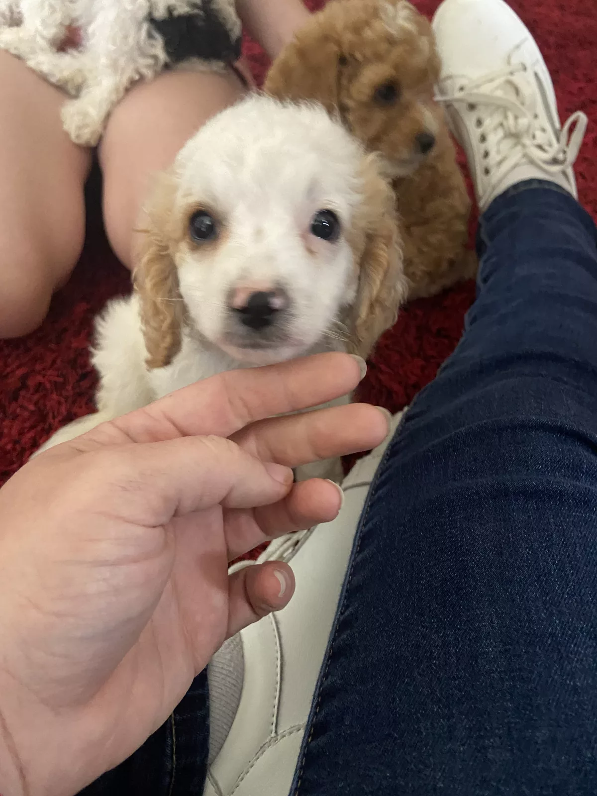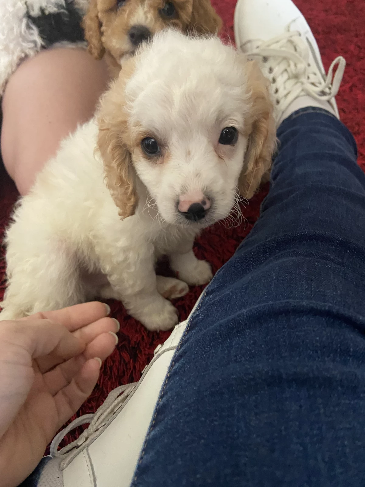 This charming little fellow is the perfect blend of his parents' best traits, boasting a soft, low-shedding coat that is as low-maintenance as it is beautiful. Having grown up in a busy household, he is exceptionally well-socialized, confident, and ready to transition seamlessly into a family environment.