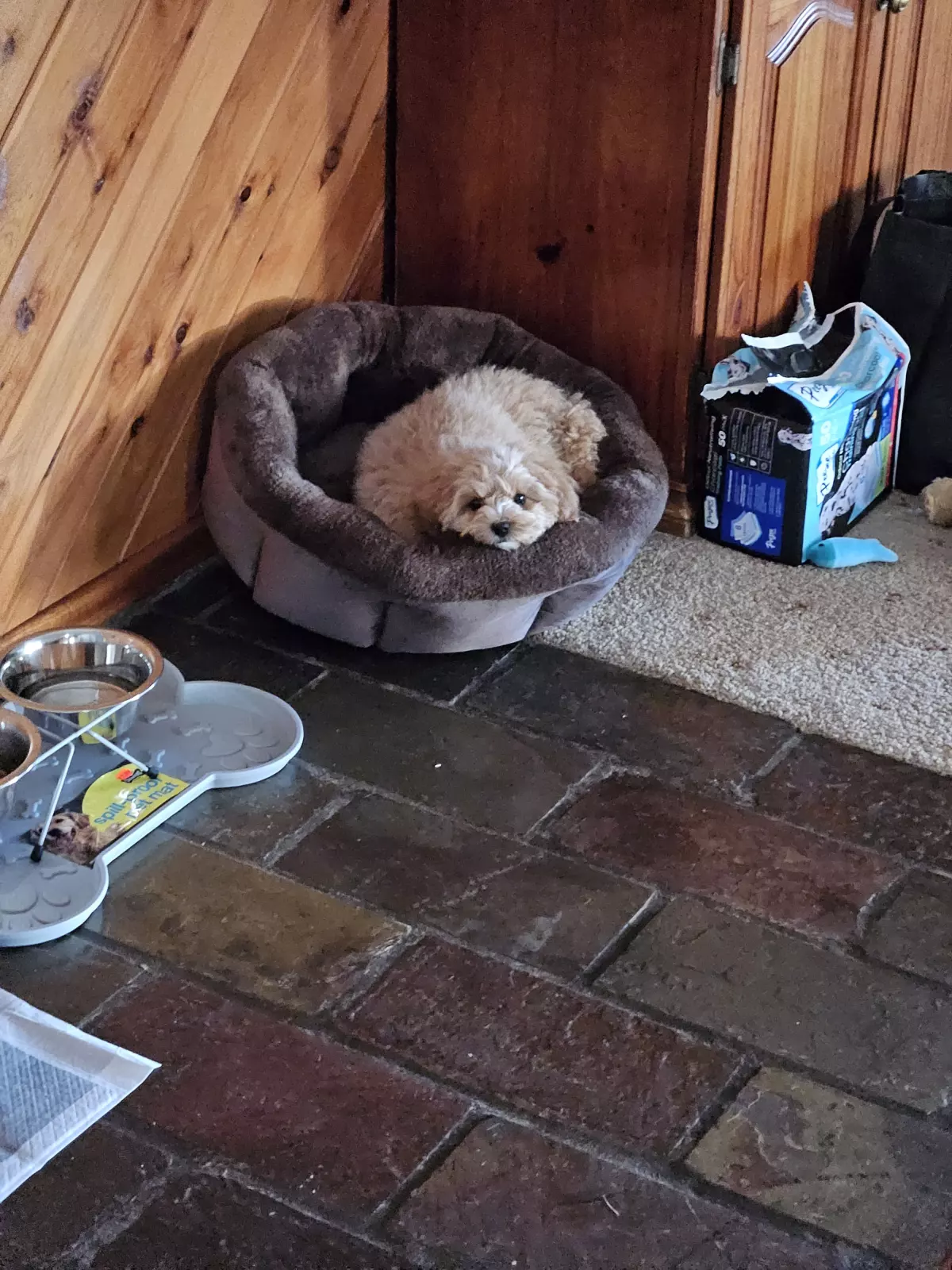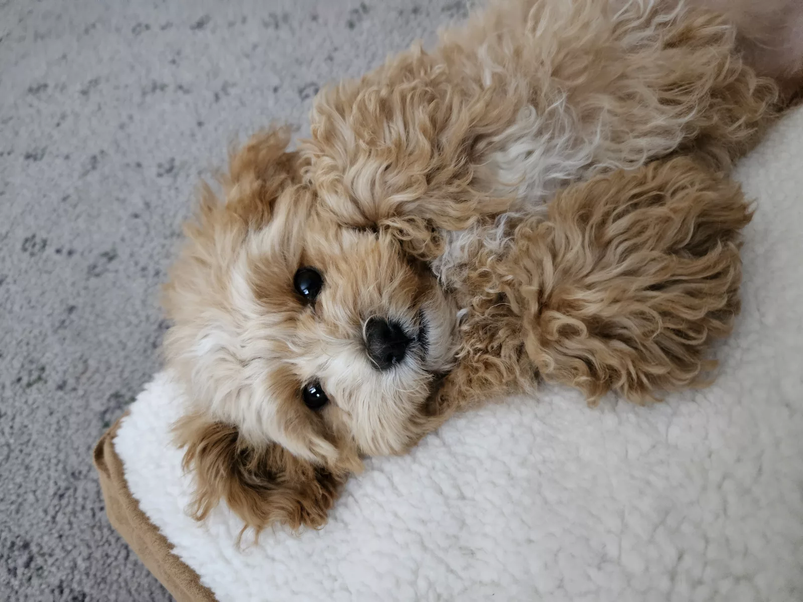 We have a beautiful 12 week old Female Cavoodle Fawn Colour with White Markings Female that we are hoping to find her 'Her Forever Home'
