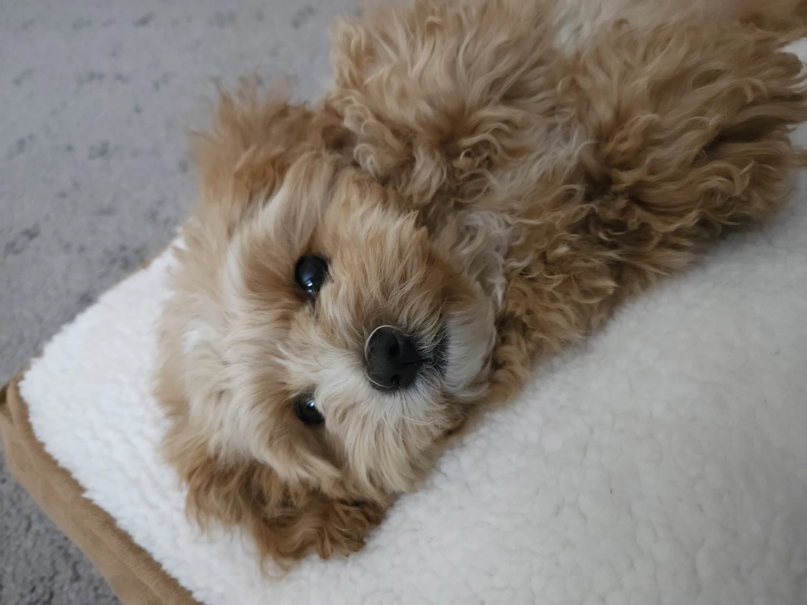 Her father is a small cav weighing 2.5kg and her mother is a white poodle weighing just under. She is micro chipped No.953010006586413 and comes with all up-to-date paperwork. Wormed and Vaccinated.