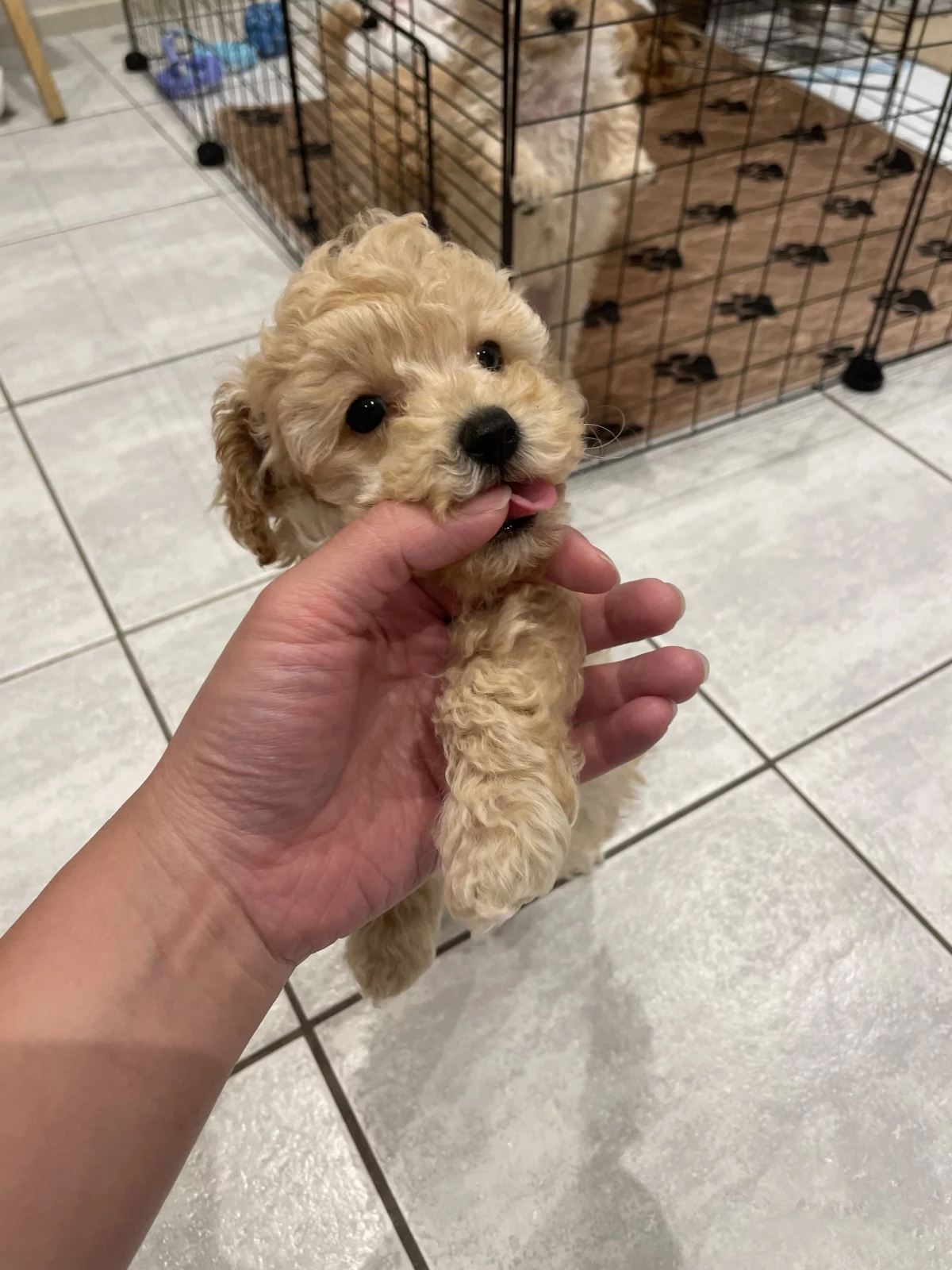Our puppies have had lots of socialisation, they love people and beautiful natures. They are more like toy poodle, because their dad is the first generation toy Moodle around 4.8kg, mum is purebred toy poodle around 2.7kg. They will be grow up around 3kg.