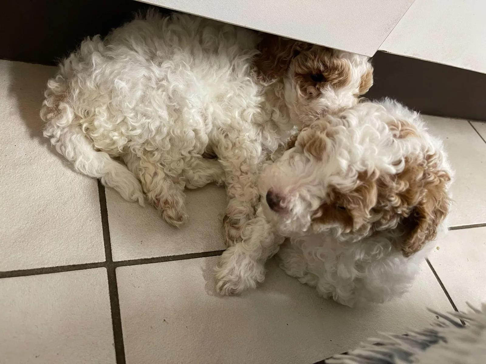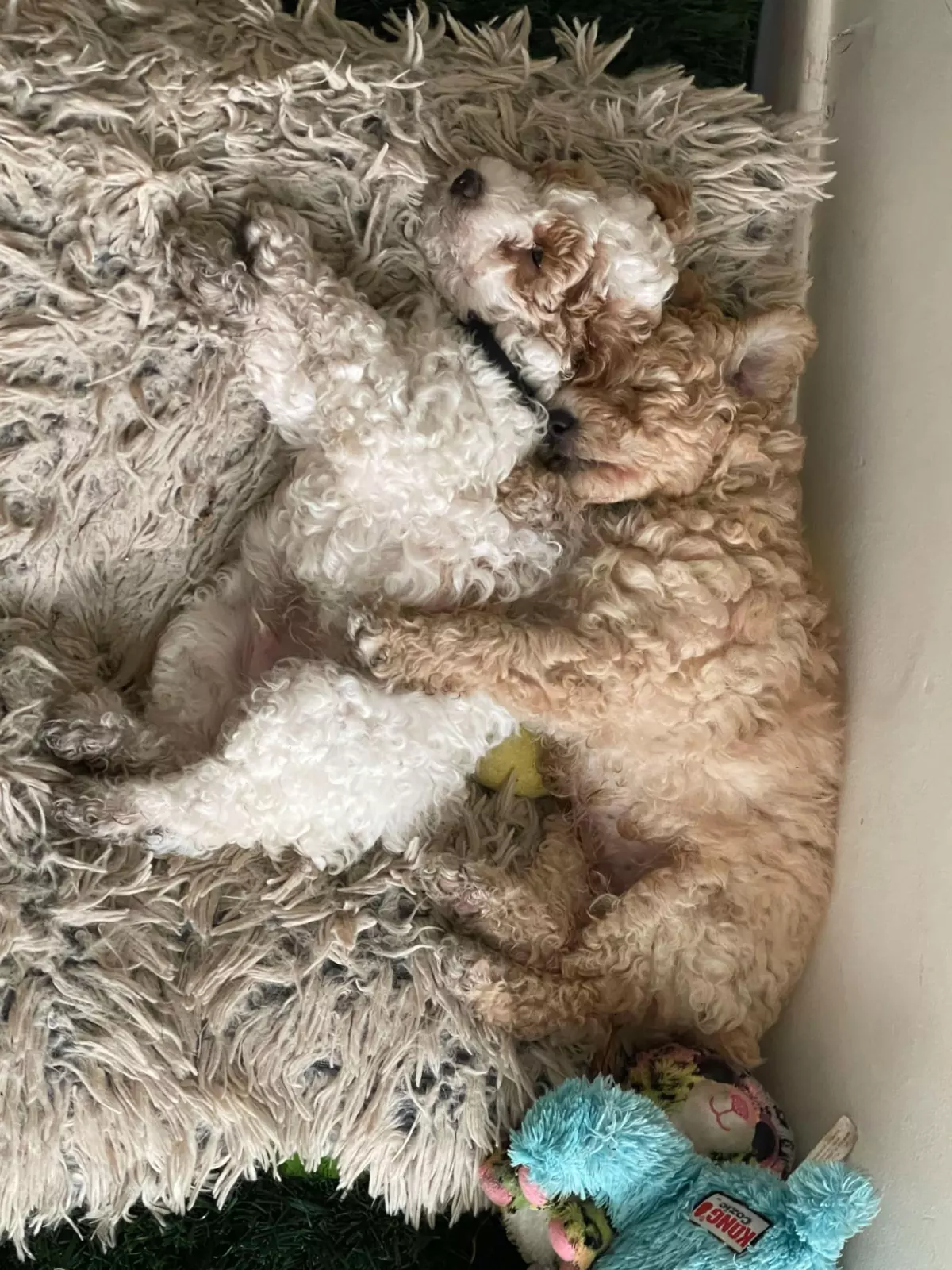 They are full of personality, tonnes of love and fun, love playing with their toys and one another. They are eating solids, lapping puppy milk & water from a bowl, are weaned from mum & are mostly toilet trained.