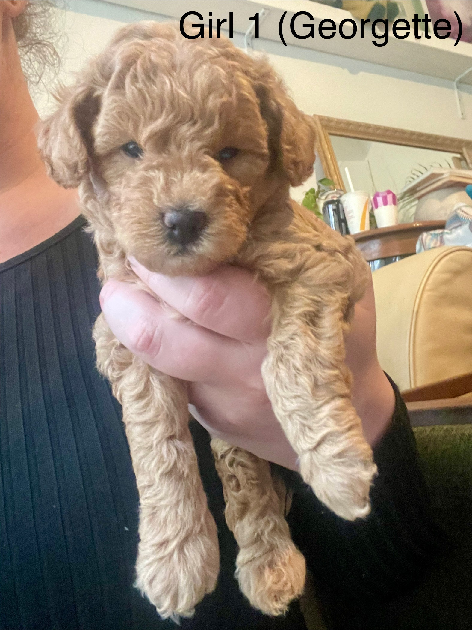 4 beautiful toy poodles born on 31/1/25. There is one boy and three girls, and will be ready to go to their forever home at 9 weeks old from 4/4/25, after there first round of vaccinations and microchipping. They are currently living in a loving home with their mum, she was mated with another pure bread toy poodle in early December. Updated photos will be added as they grow.