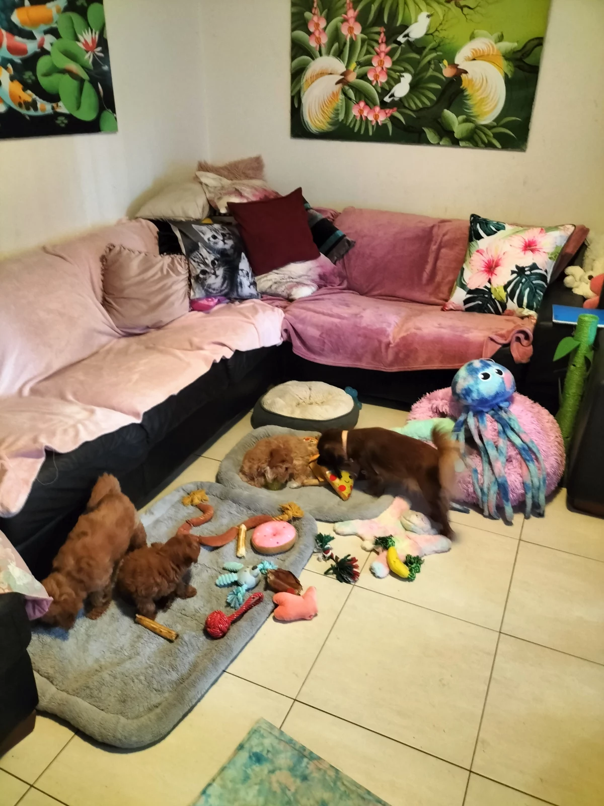 They are all doing well with their toilet training and have started to learn how to walk on a lead and to do some tricks.