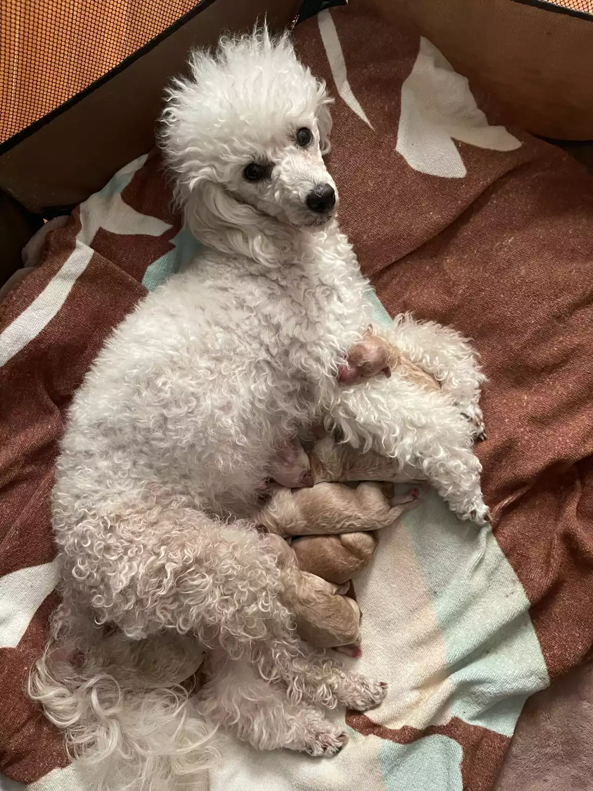 👩👨 Parents: Mom is white and Dad is red, both purebred Toy Poodles. If you come to visit the puppies, you can also meet their lovely parents!