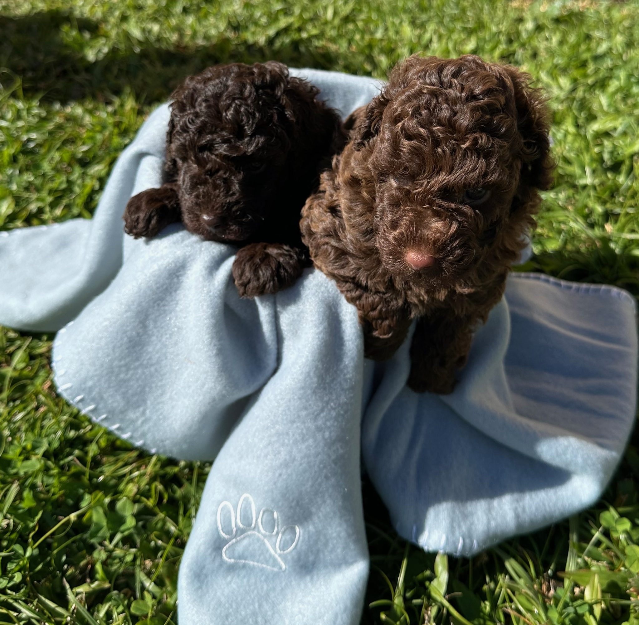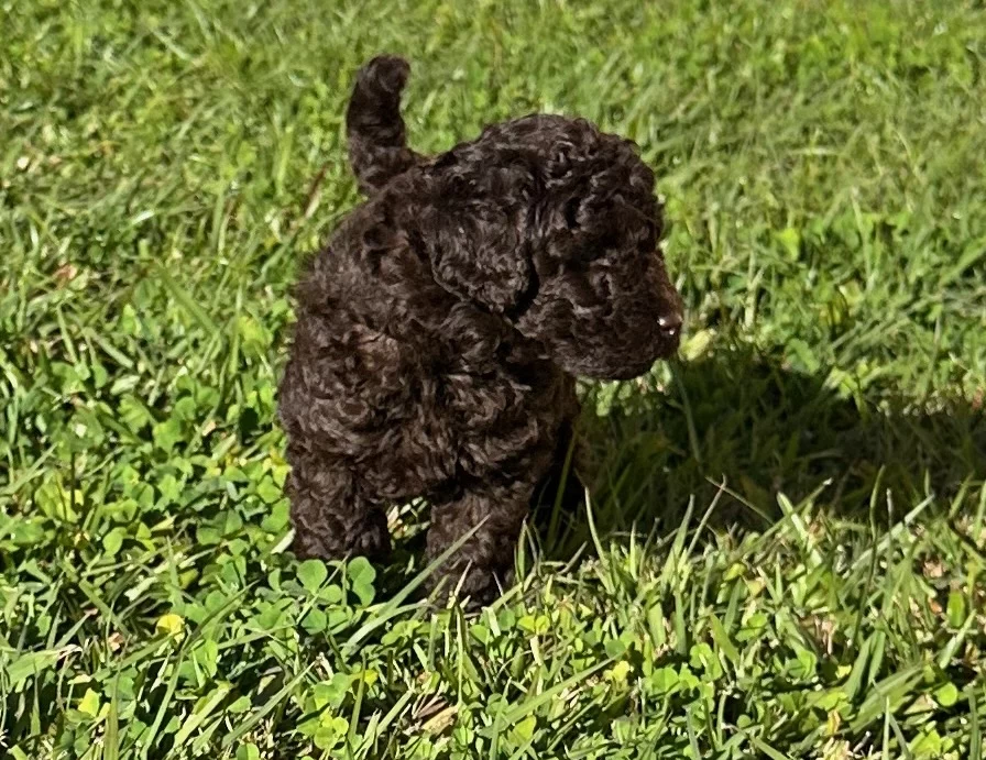1 male (dark brown) and 1 female (SOLD) purebred toy poodle looking for their forever family. These beautiful brown toy poodles are available to their new home on the 11/8/24. Puppies will come vet checked, microchipped, 1st vaccination, wormed. Raised in a family home with children and other poodles. They are from Roxie an brown toy poodle and Lord Boris a dark brown toy poodle, both DNA clear through orivet. Located on the NSW/Qld border, transport available at buyer cost.