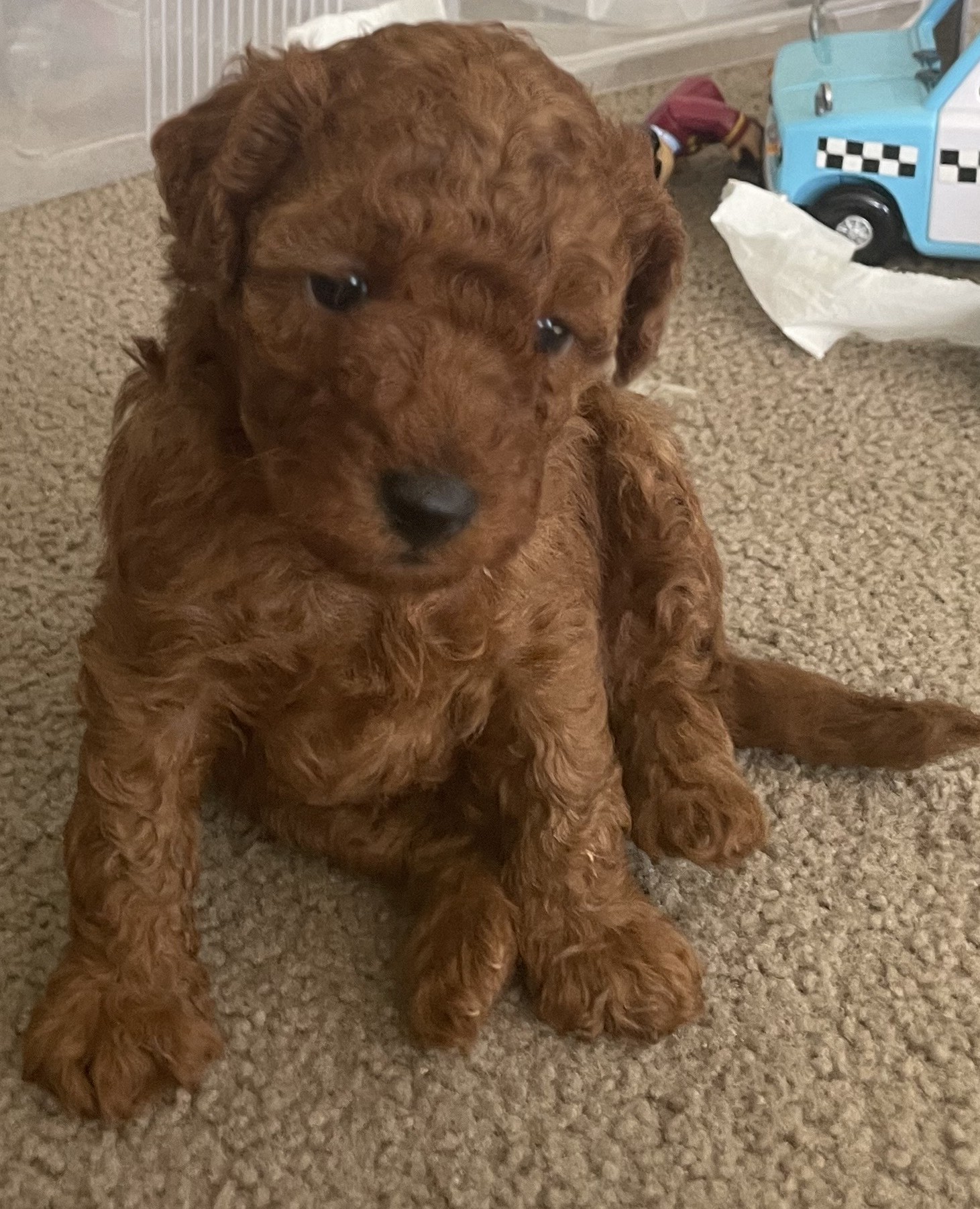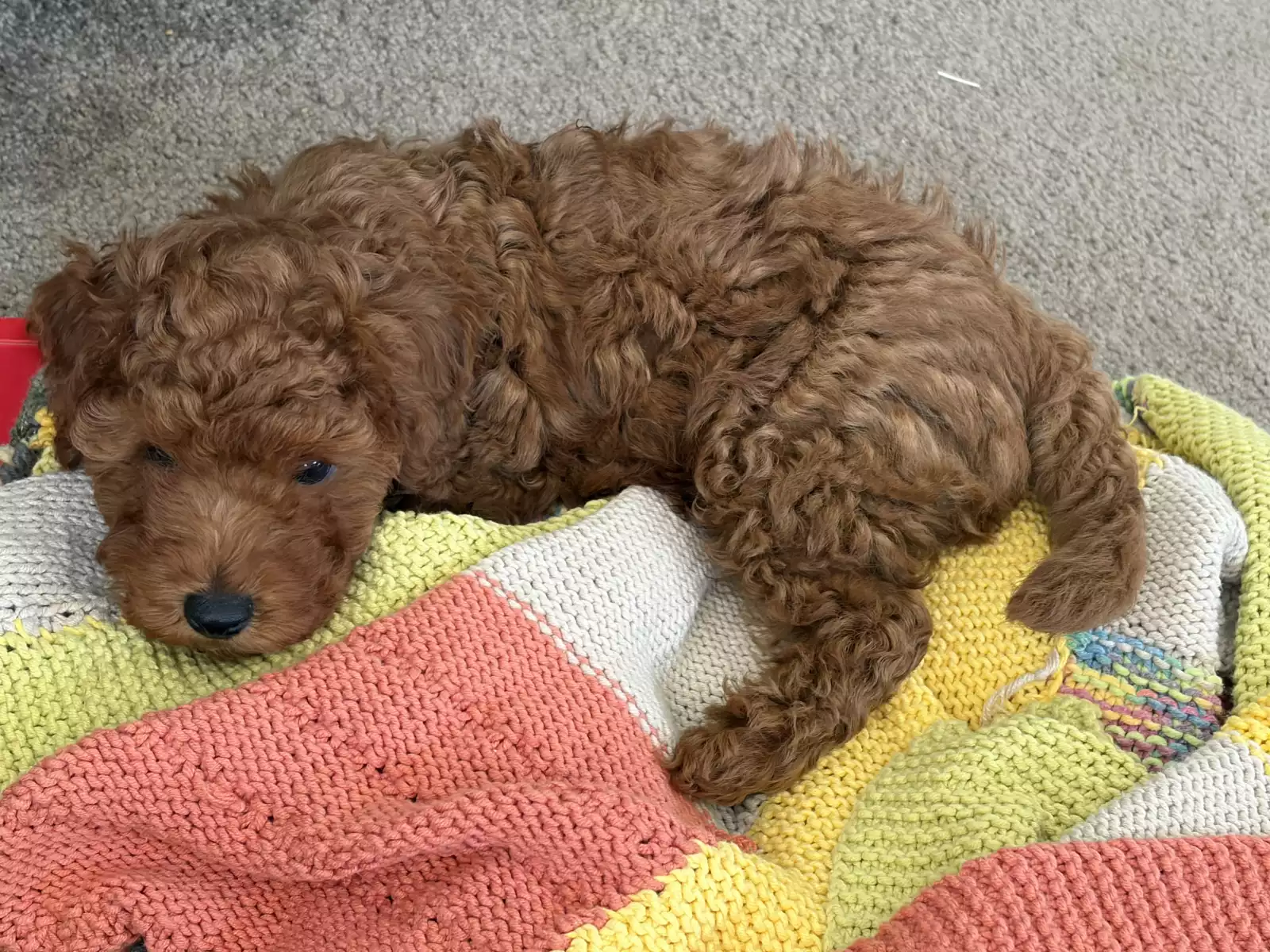 Adorable and healthy dark red purebred male Toy Poodle puppy for sale!