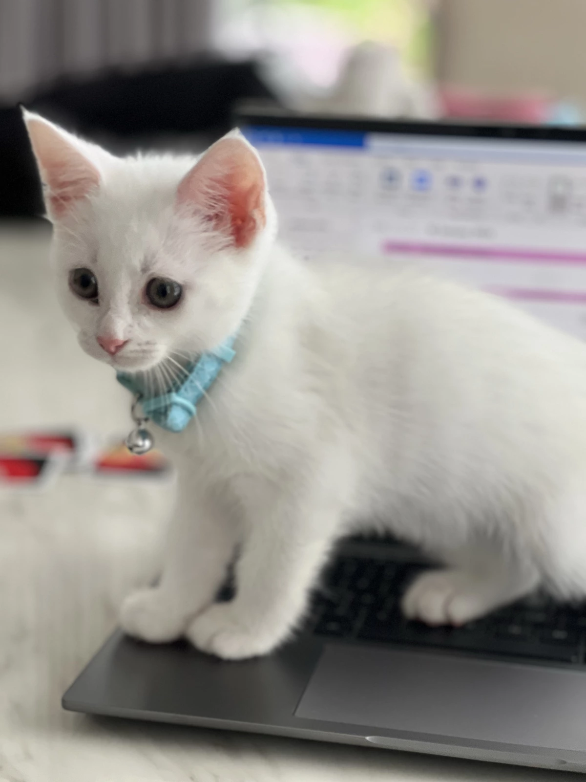 Introducing Zeki, the 10-week-old Turkish Angora who's as stunning as a model and as mischievous as a ninja! This little furball was born on 29/10/2023 and is on a mission to find his furever home, preferably one with humans who love to play hide-and-seek and give the best belly rubs in town. Zeki's talents include pouncing on toys, stealing hearts, and looking ridiculously adorable while doing it. So, if you're ready for a lifetime of laughter, cuddles, and the occasional surprise attack from this fluffy little rascal, Zeki is eagerly waiting to be part of your family!