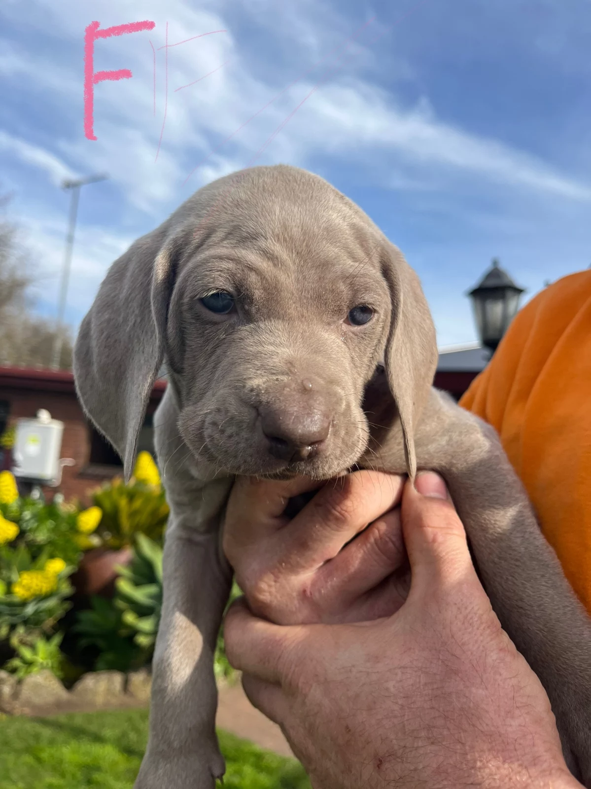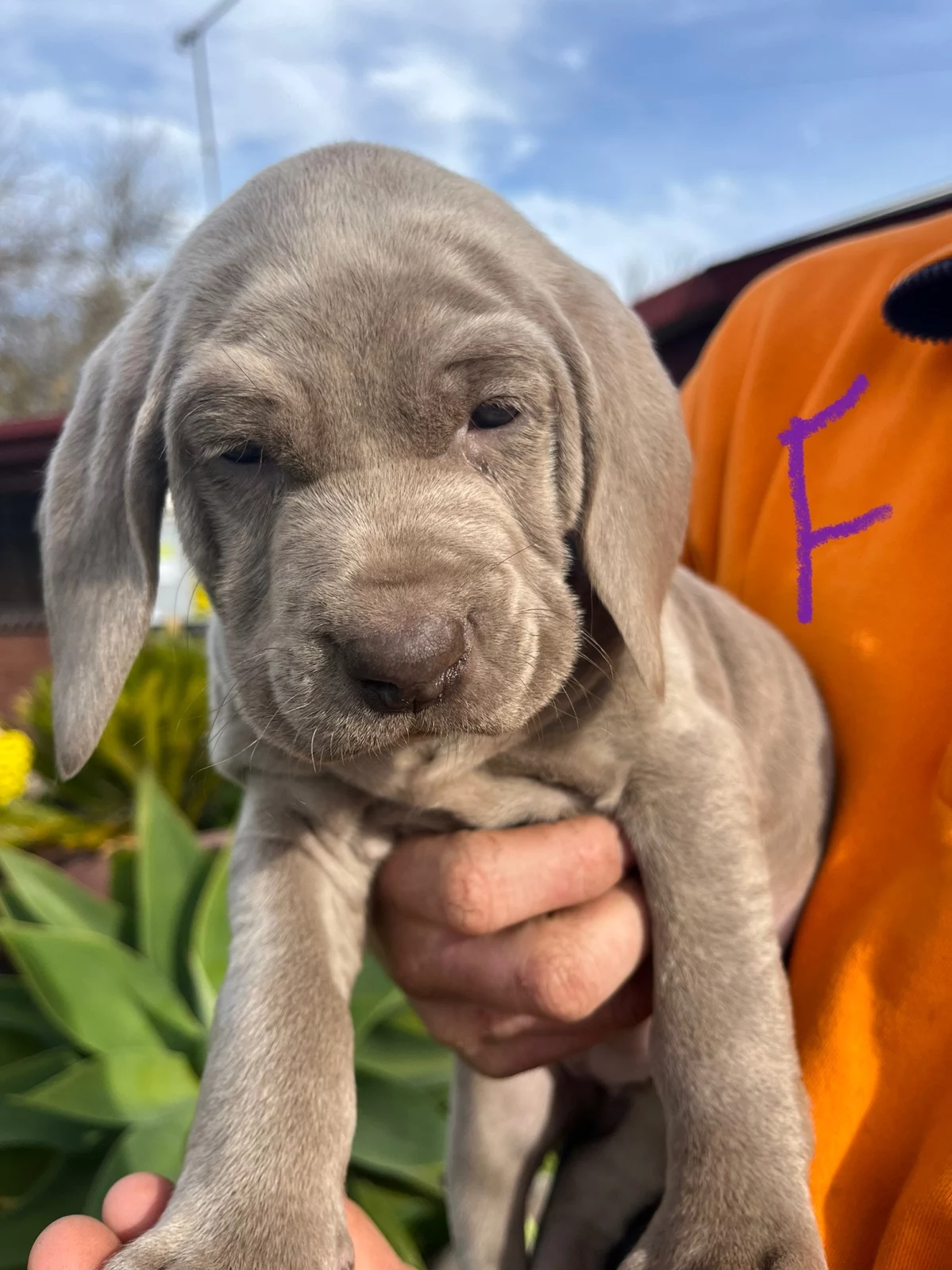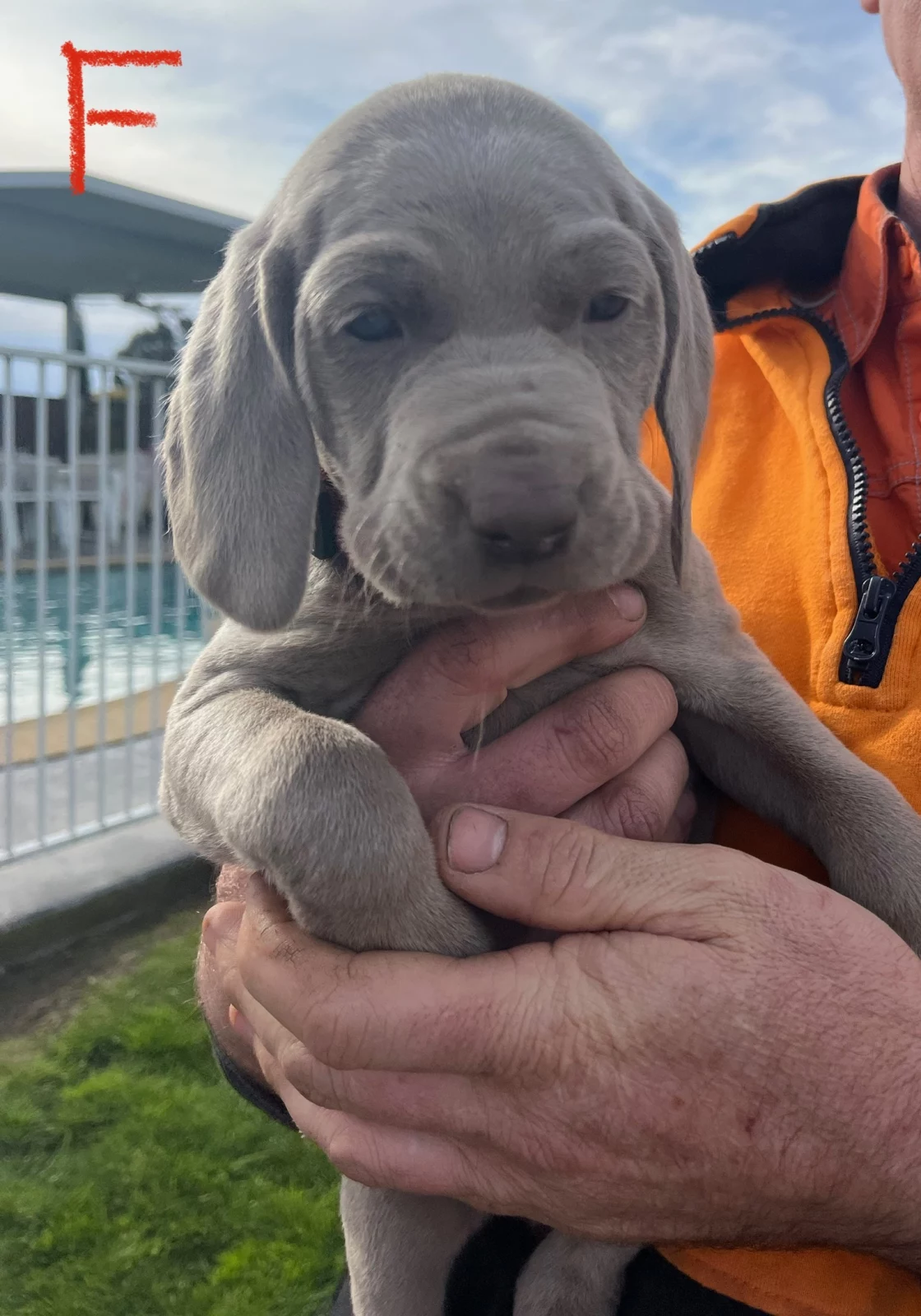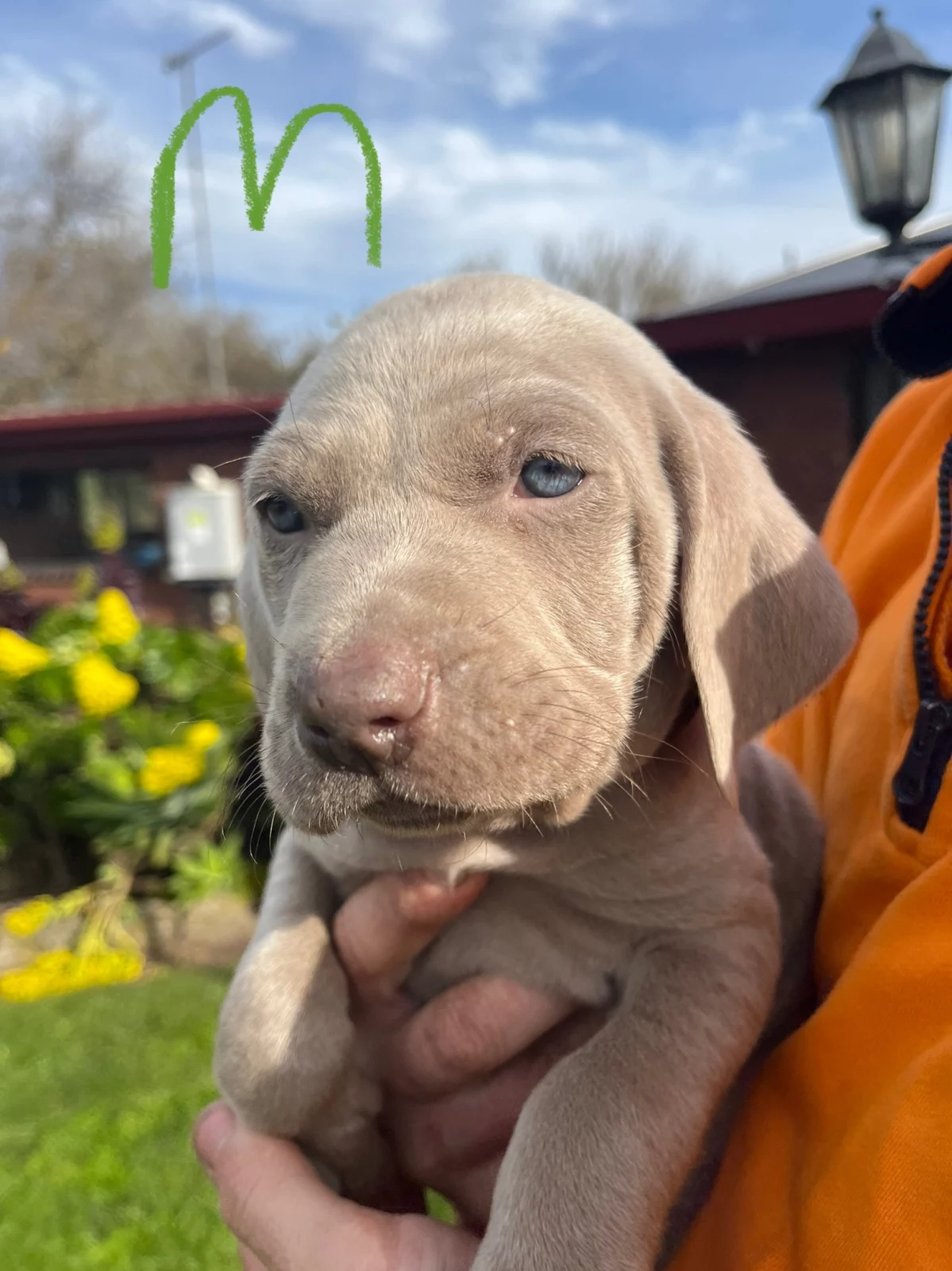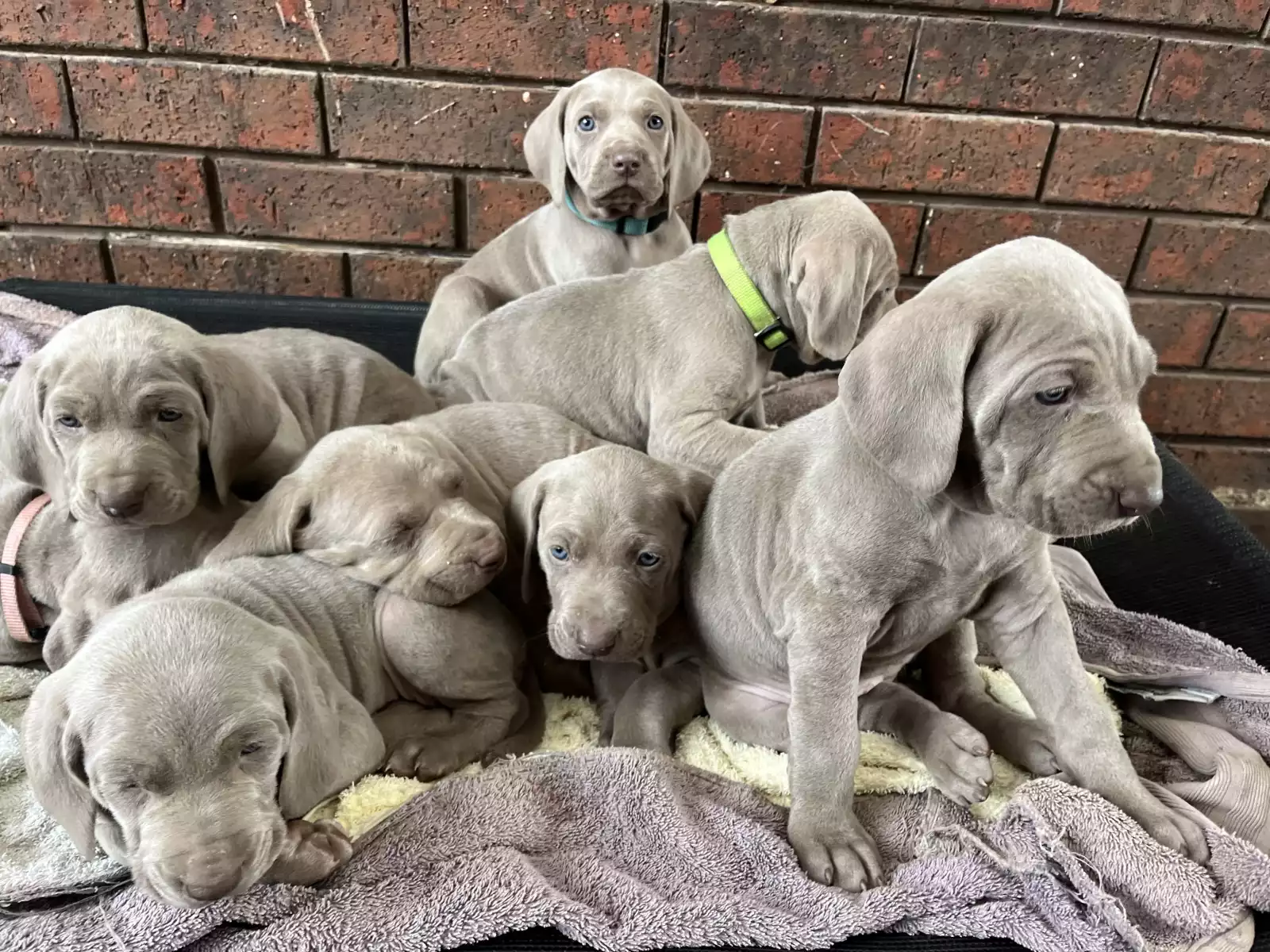 We have purebred Weimaraner puppies available for their forever homes. The dad has papers, while the mother is without. The litter consists of 5 girls and 3 boys, all born on the 24th of June, and will be 8 weeks old on 19th August, where they will be ready for their new families. These puppies have been microchipped, vet-checked, wormed, and have received their first vaccinations. Each puppy has a unique microchip number for identification:
