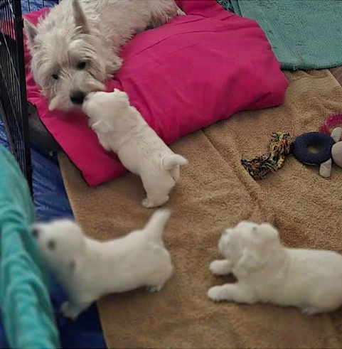 This adorable West Highland White Terrier puppy is looking for his forever home! There is only 1 male available, as the other 2 puppies have already found their homes. He was born on 24/03/2025 and will be vaccinated and microchipped before going to his new family. Both Mum and Dad are available for viewing, so you can meet the loving parents. We are proud members of Responsible Pet Breeders Australia (RPBA-1674), ensuring quality and ethical breeding. Westieworld also offers financing through Handypay (similar to Afterpay), making the adoption process easier. You can watch this little one grow on Instagram and Facebook at @westieworld.au!