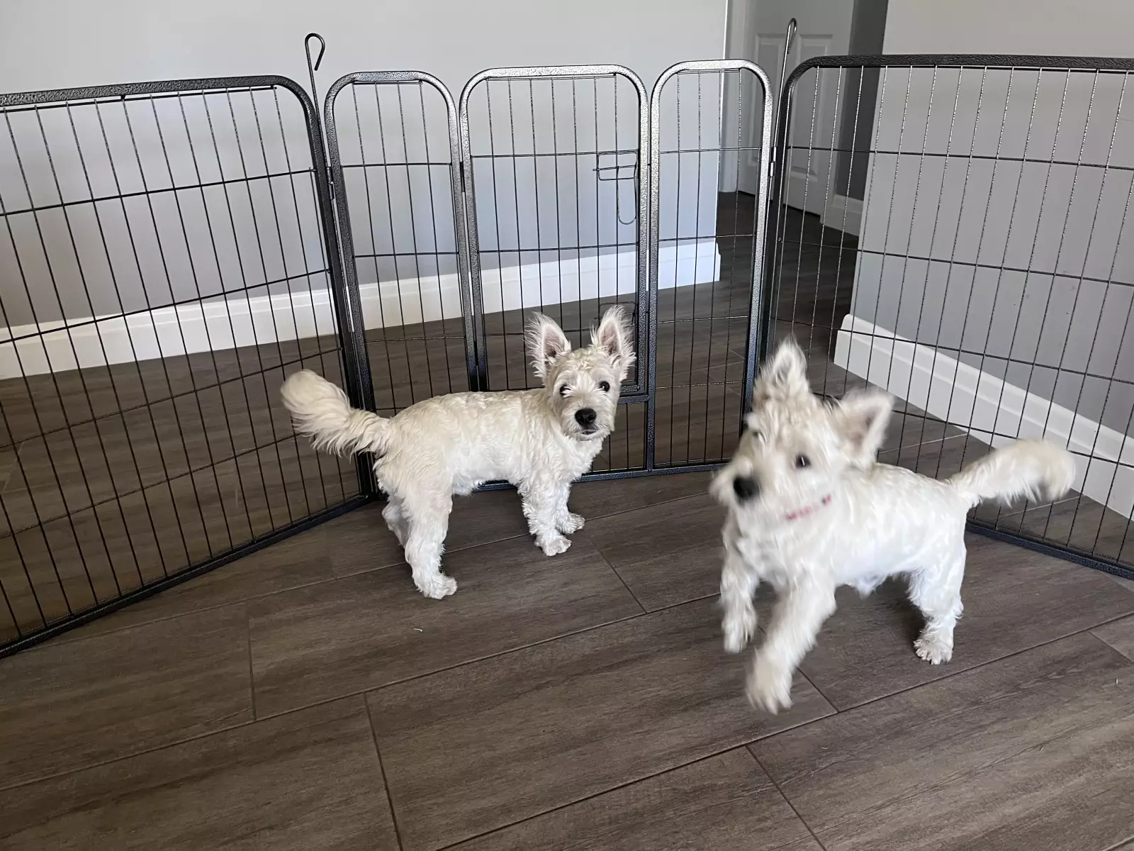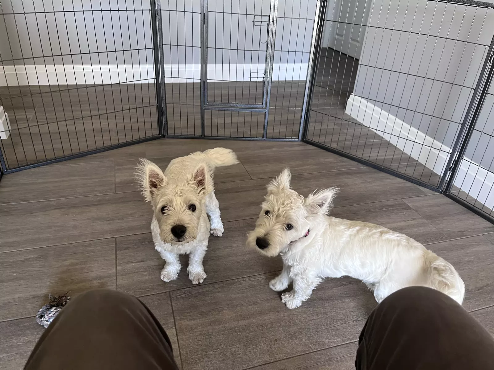 Bobo and Olly, 12-month-old male West Highland White Terriers, are looking for a new home. These beautiful boys are de-sexed, vaccinated, and microchipped, ensuring they are healthy and well-cared for. Due to unforeseen circumstances, we are unable to provide the time and attention they deserve. Bobo and Olly have a strong bond and would love to stay together if possible, as they are very attached to each other. They are friendly, playful, and would make wonderful companions for a family who can offer them the time, care, and love they need. Please contact us if you are interested in offering them a forever home.